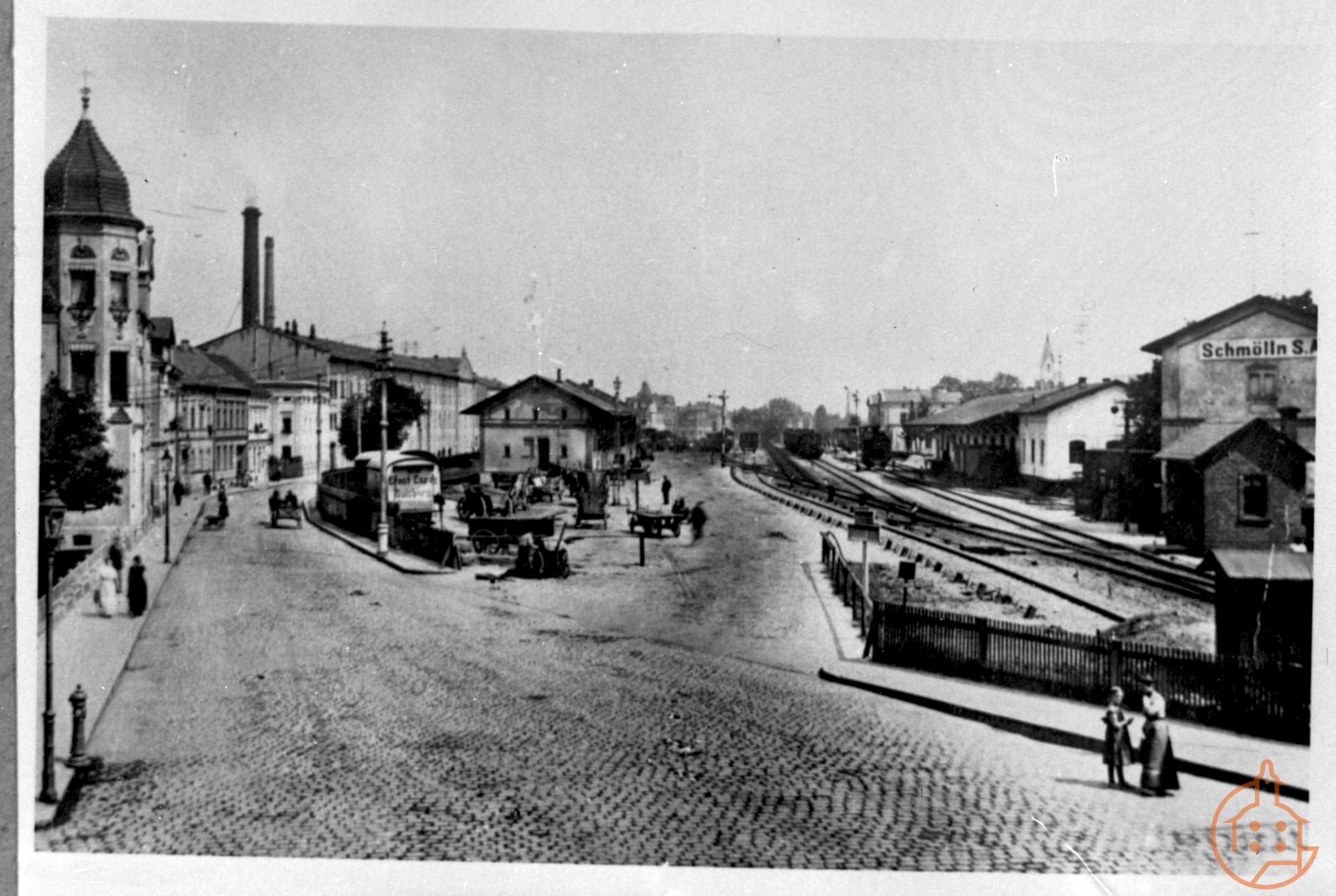 Bahnhofstraße (Altenburger Straße) mit Bahnhof, Druckerei Böckel, Schillerplatz