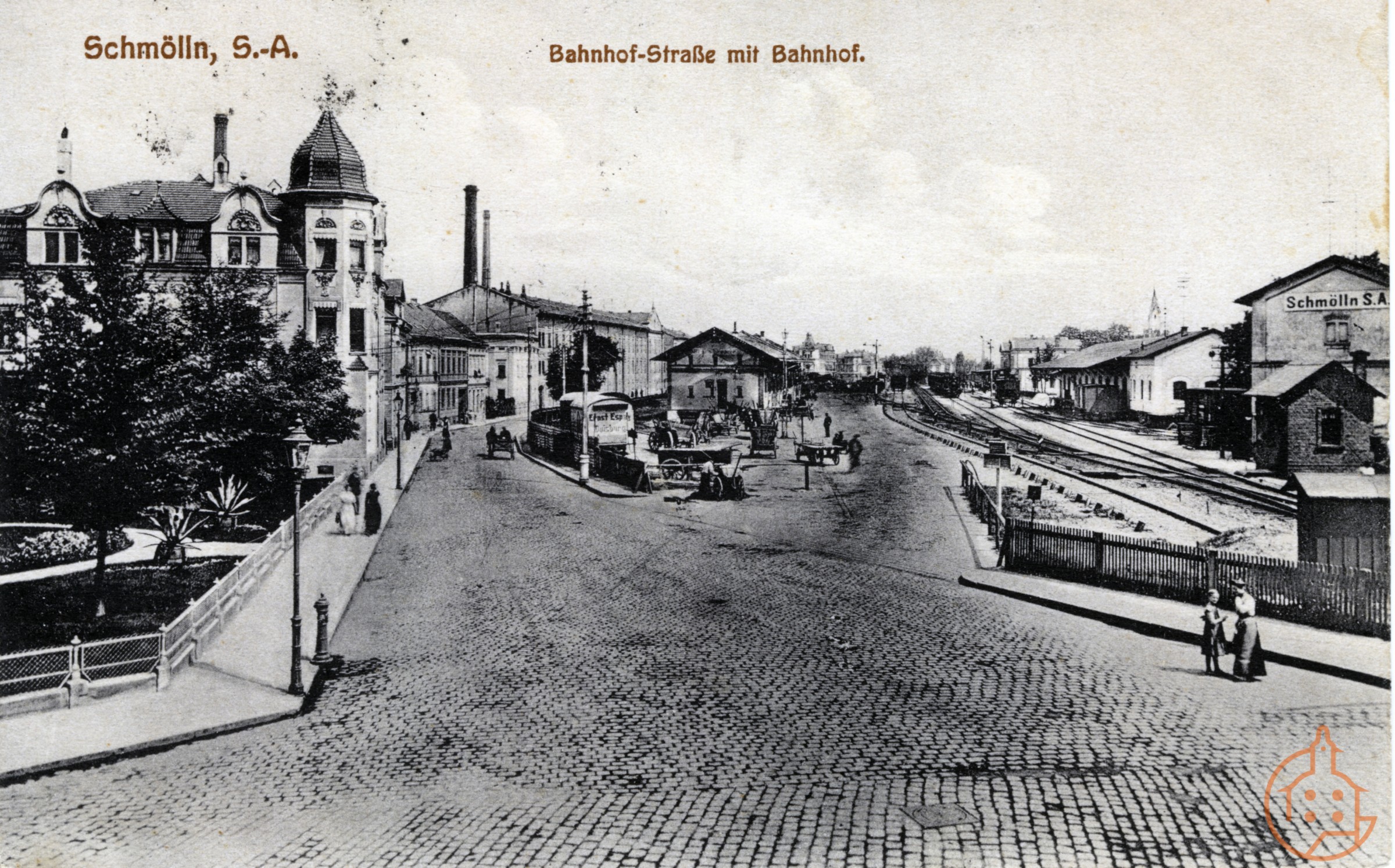 Bahnhofstraße (Altenburger Straße) mit Bahnhof, Druckerei Böckel, Schillerplatz