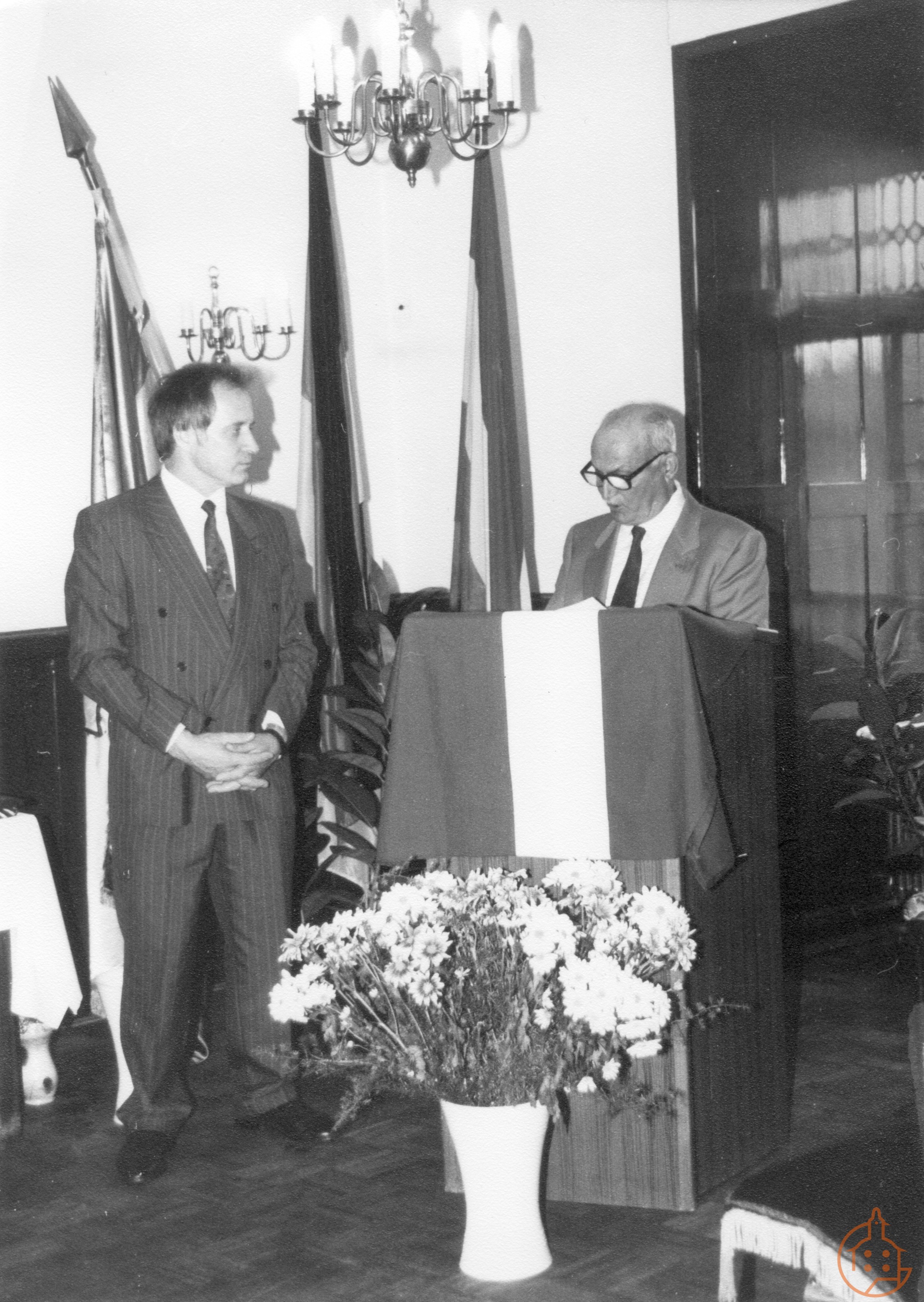 Anläßlich der 925-Jahr-Feier Rede des OB von Mühlacker, Herrn Knapp, an den Bürgermeister Herbert Köhler im Rathaus
