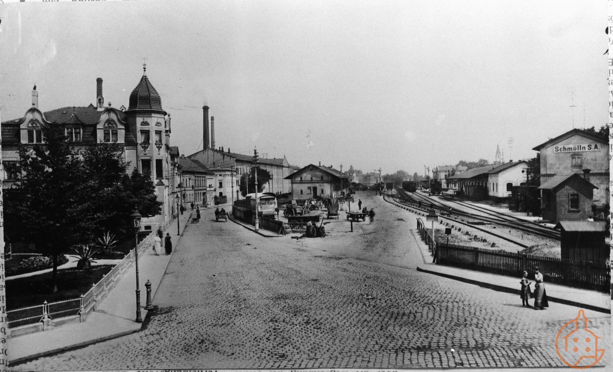 Bahnhofstraße (Altenburger Straße) mit Bahnhof, Druckerei Böckel, Schillerplatz