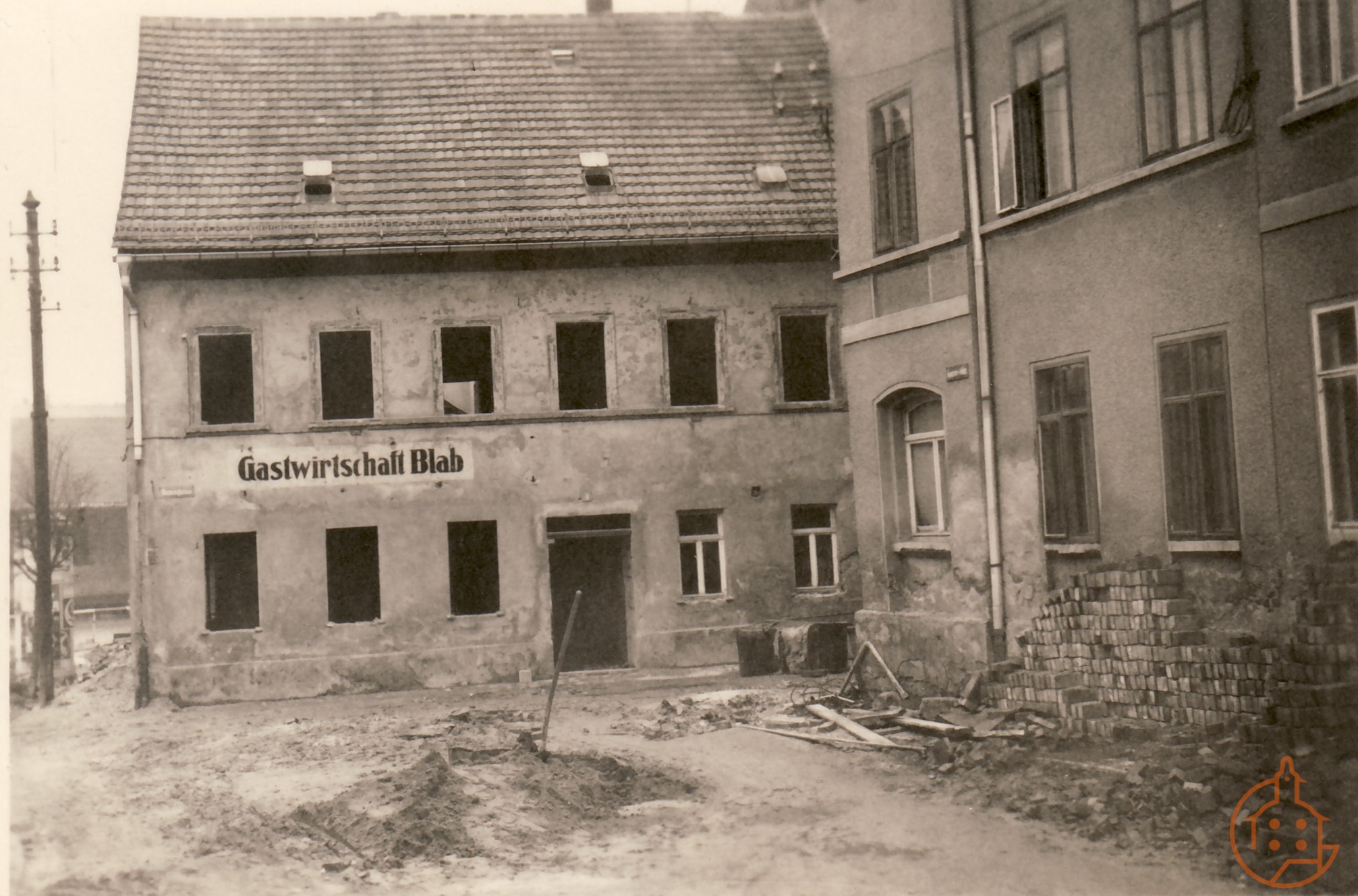Abriß der Gastwirtschaft Blab ("Drehscheibe"), Blick von der Kurzen Straße