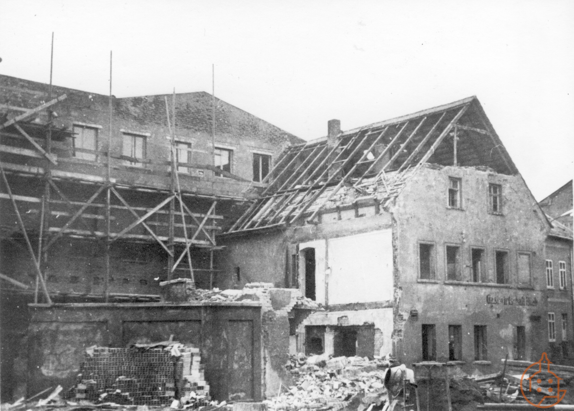 Abriß der Gastwirtschaft Blab ("Drehscheibe"), Blick vom Bahnhofsplatz