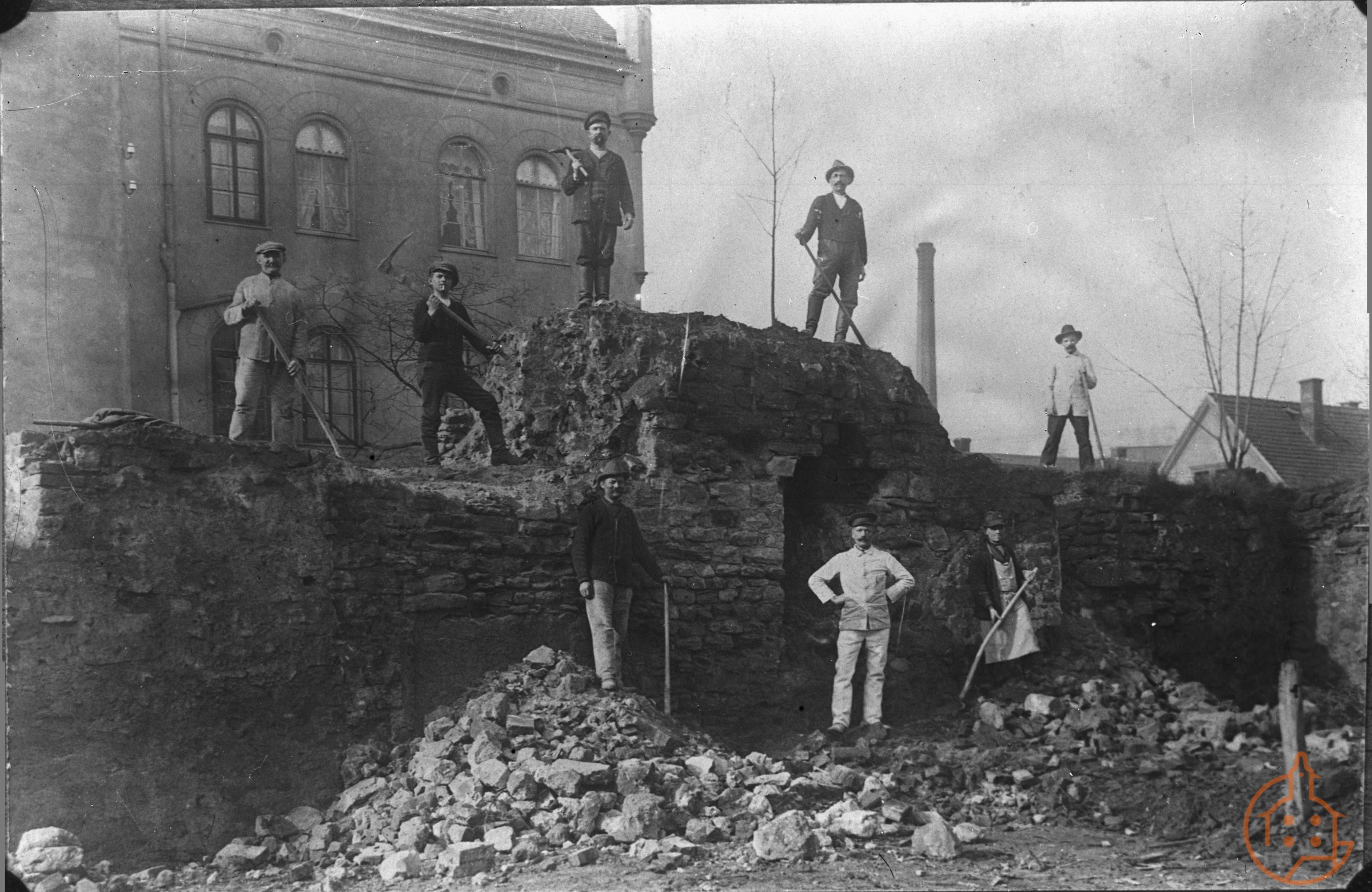 Abriß des Hauses von  Weises  im Amtsgerichtsgarten im Frühjahr 1912, Schloßstraße 12