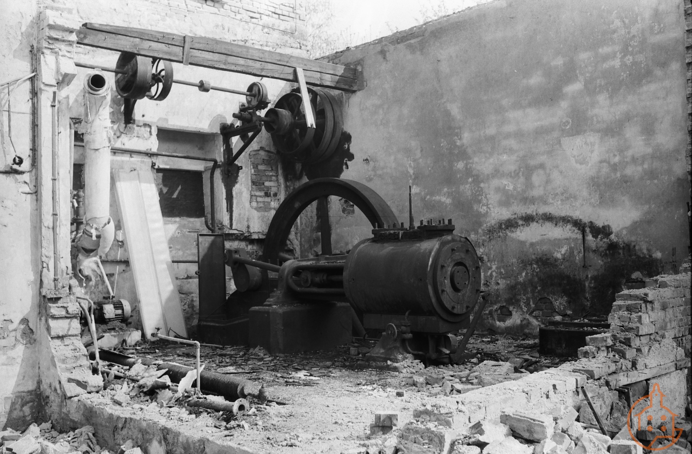 Alte Dampfmaschine mit Transmission vor der Verschrottung