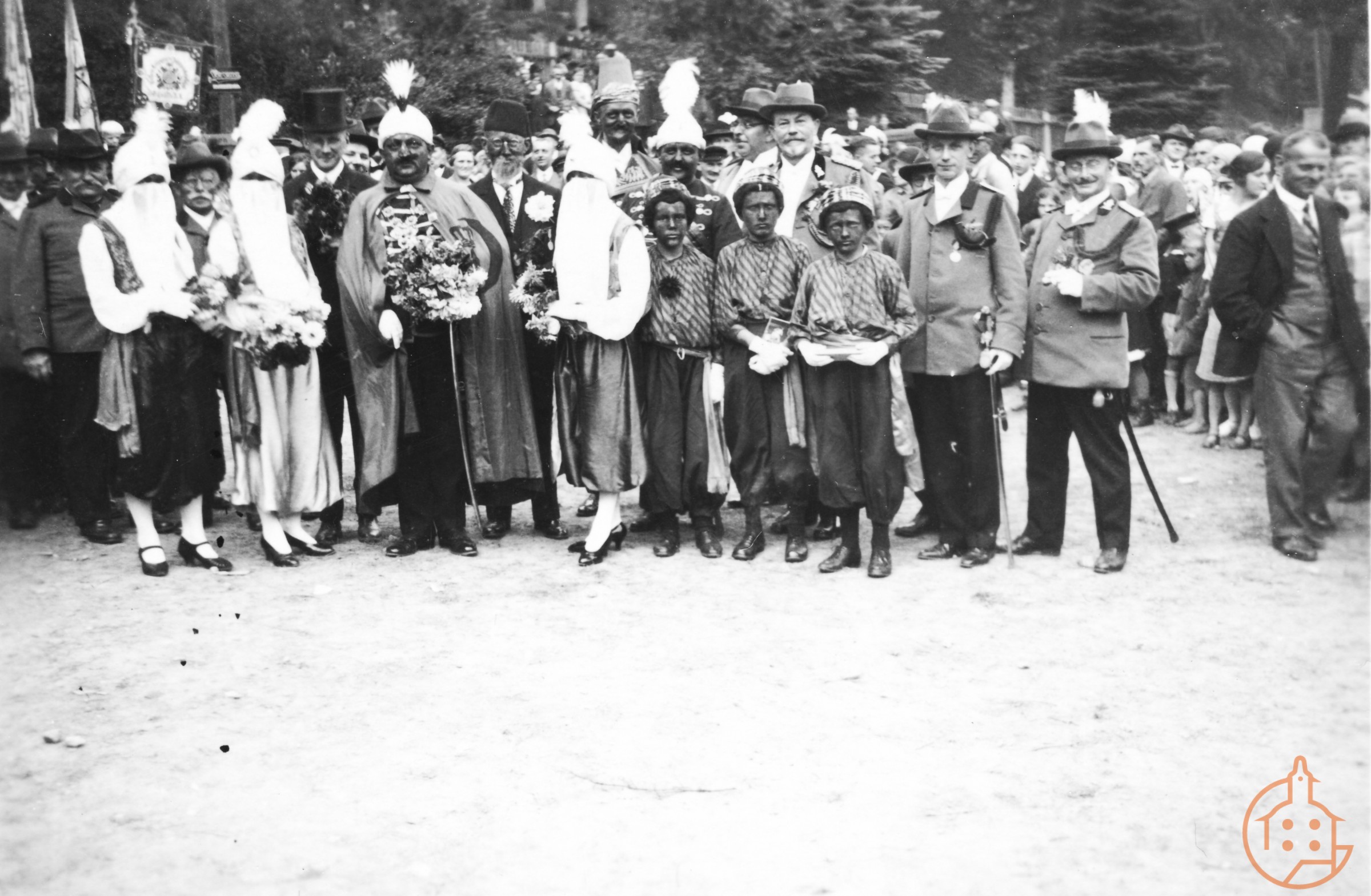 Gruppenfoto mit Aman Ullah, seiner Begleitung und Schützenmitgliedern auf dem Schützenplatz in der Ronneburger Straße