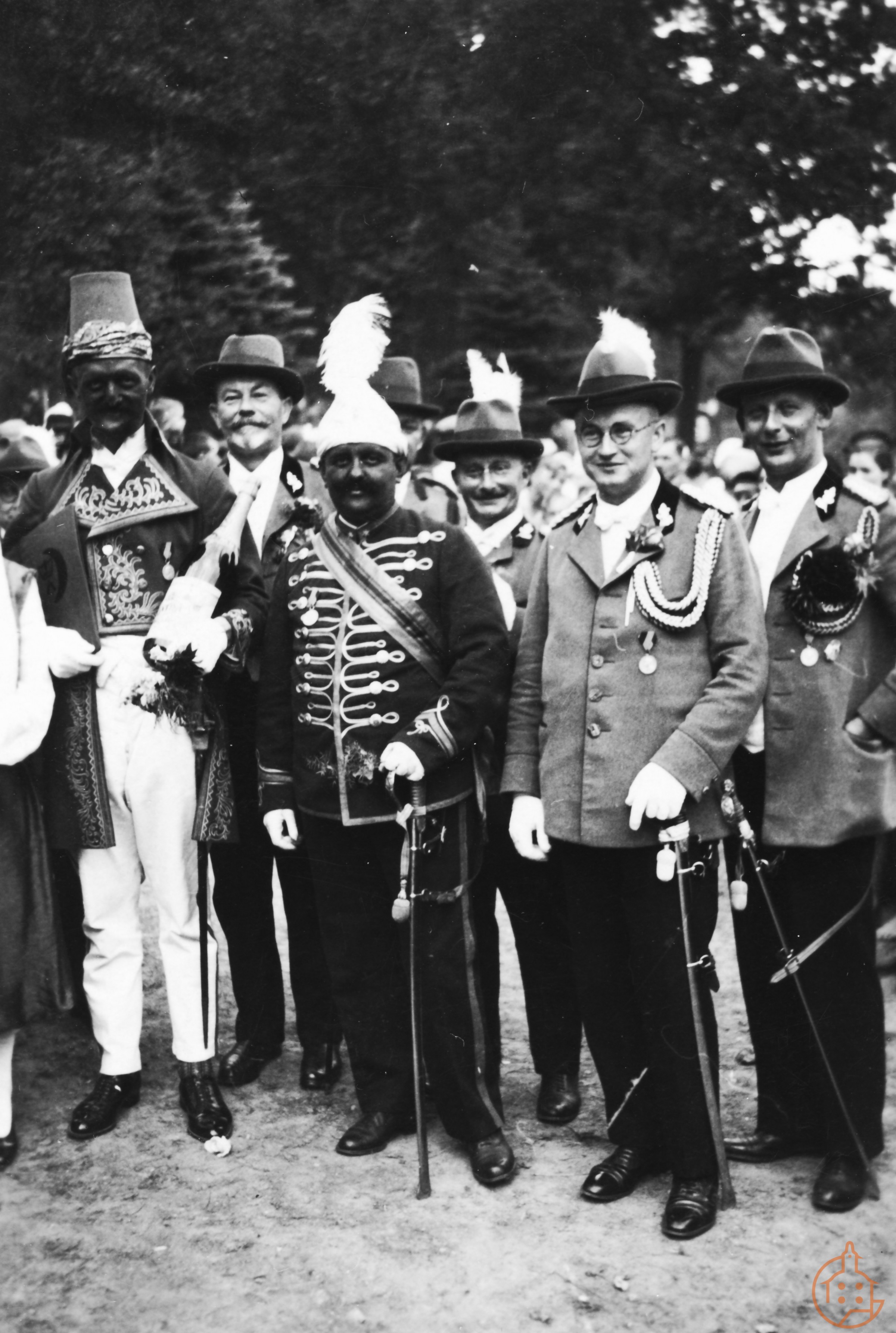 Mitglieder der "afghanischen Delegation" und der Schützengesellschaft auf dem Schützenplatz in der Ronneburger Straße
