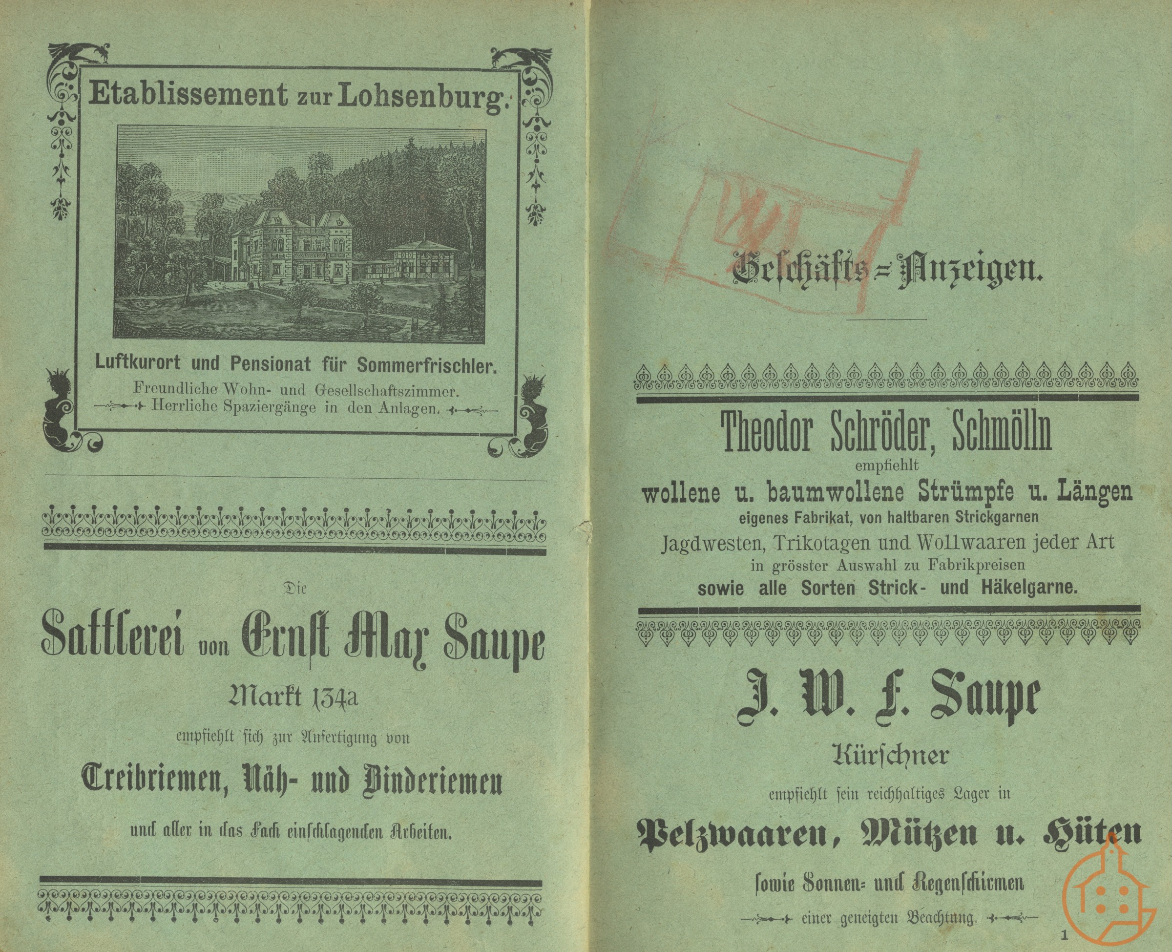 Annoncen verschiedener Geschäfte, Ansicht Lohsenburg,