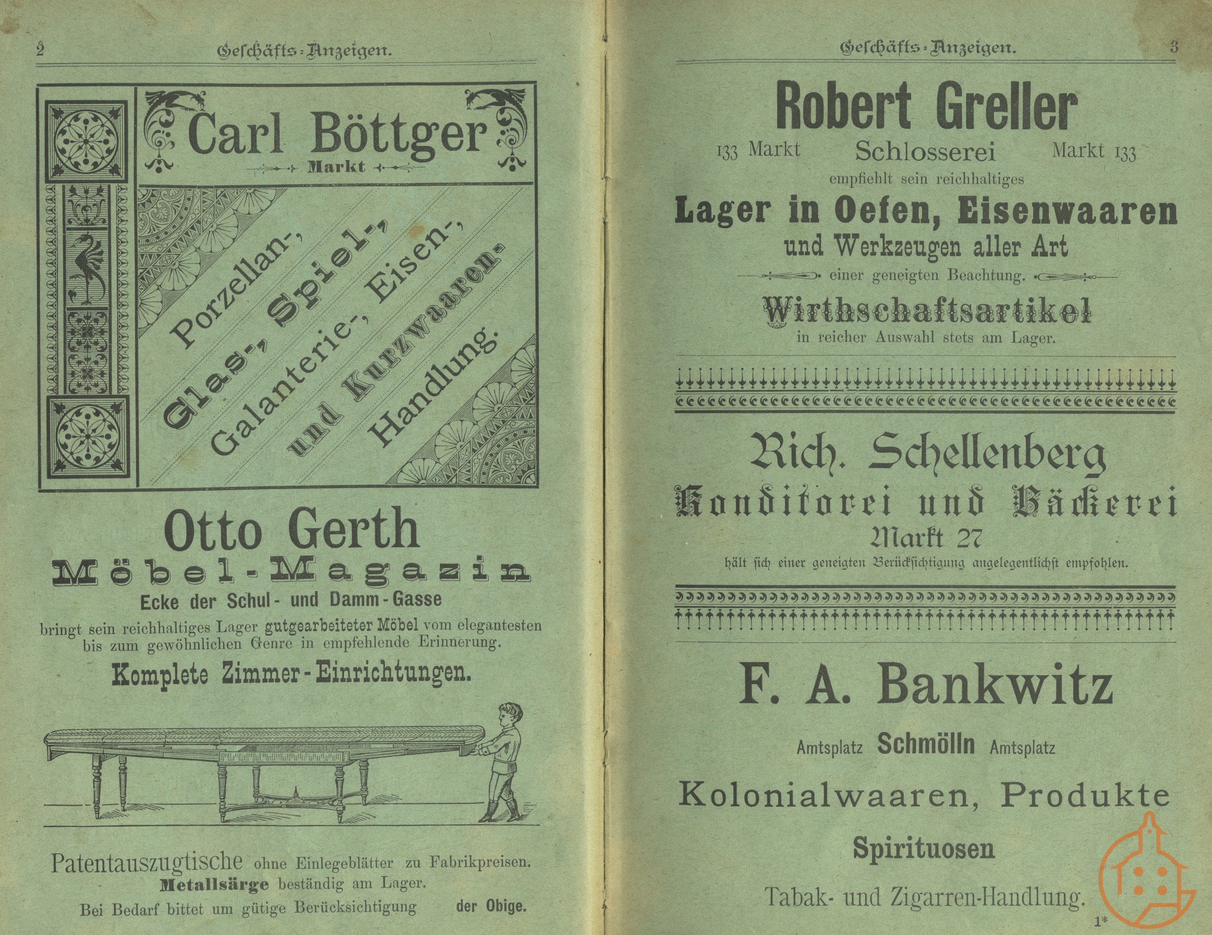 Adressbuch Schmölln 1890/91, Carl Böttger, Otto Gerth, Robert Greller, Richard Schellenberg, F.A.Bankwitz
