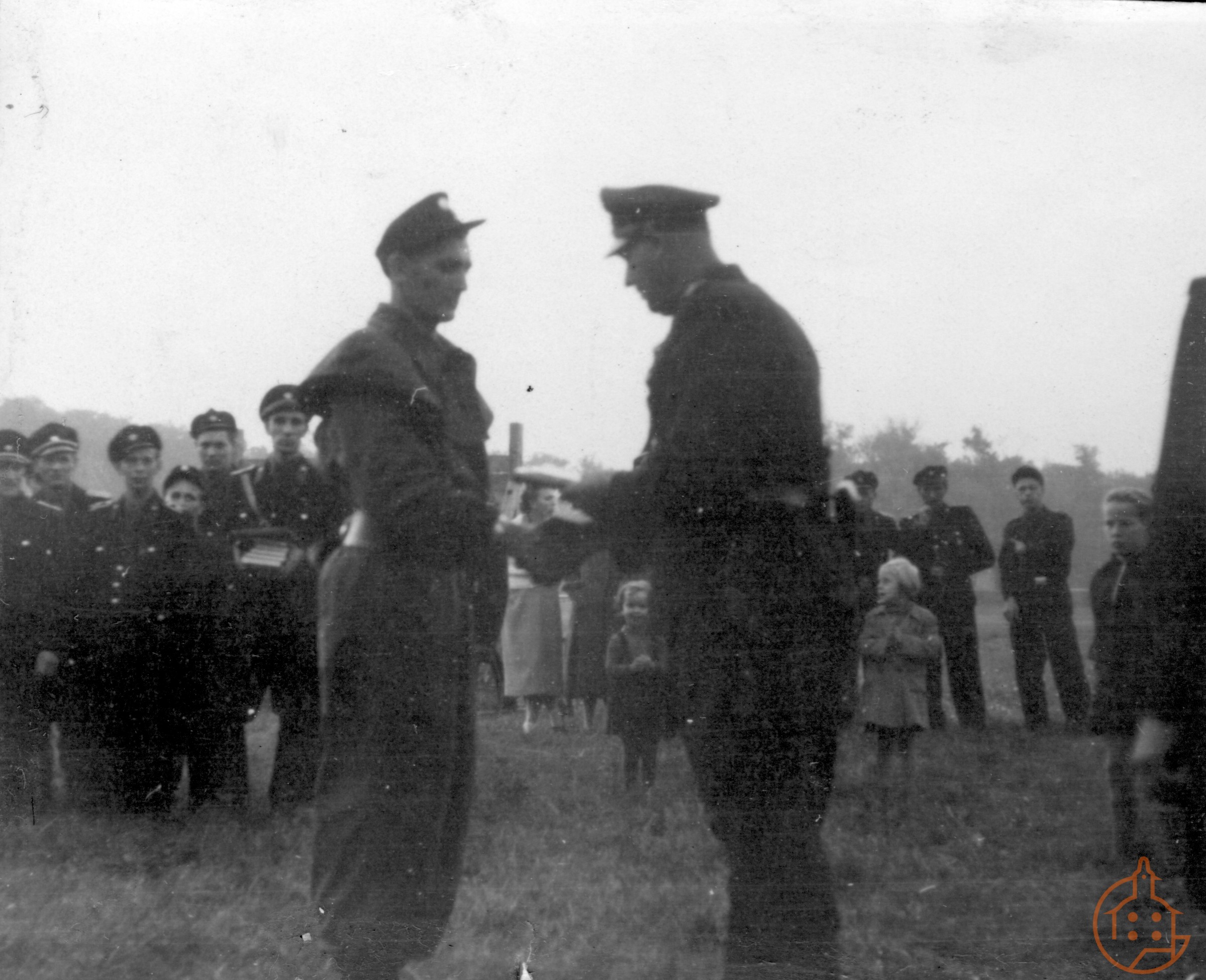 Auszeichnung des Kameraden Pötzschner zum 3. Platz im Sturmleitersteigen anläßlich des Bezirks-ausscheides im Feuerwehrkampfsport