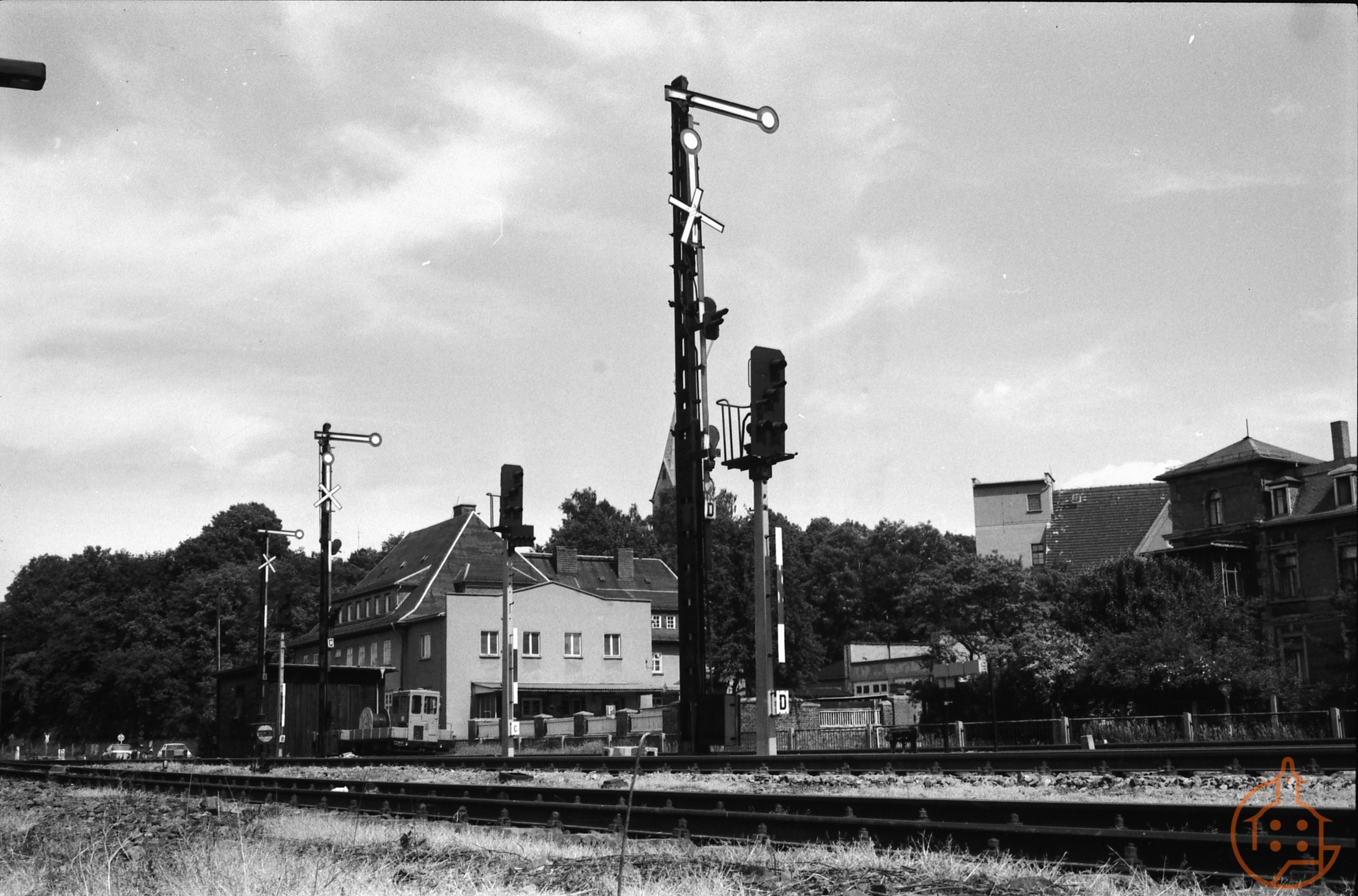 Stichwörter: Bahngelände, Post, Bahnsignale