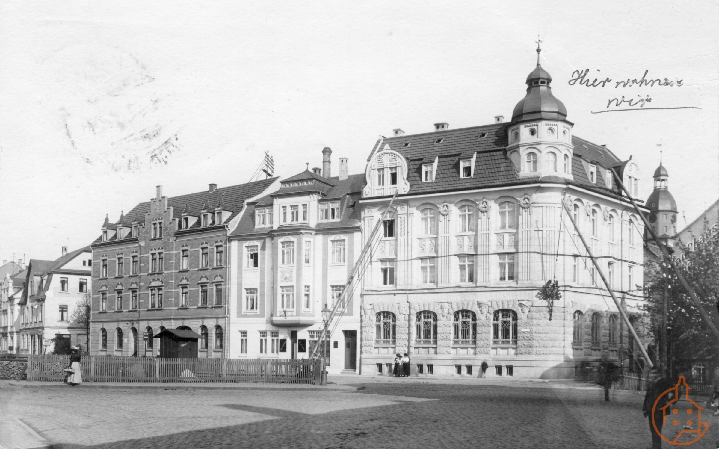 Blick vom Schillerplatz in Richtung Bahnhofsplatz mit Gebäude der Allgemeinen Deutschen Credit-Anstalt (ADCA)
