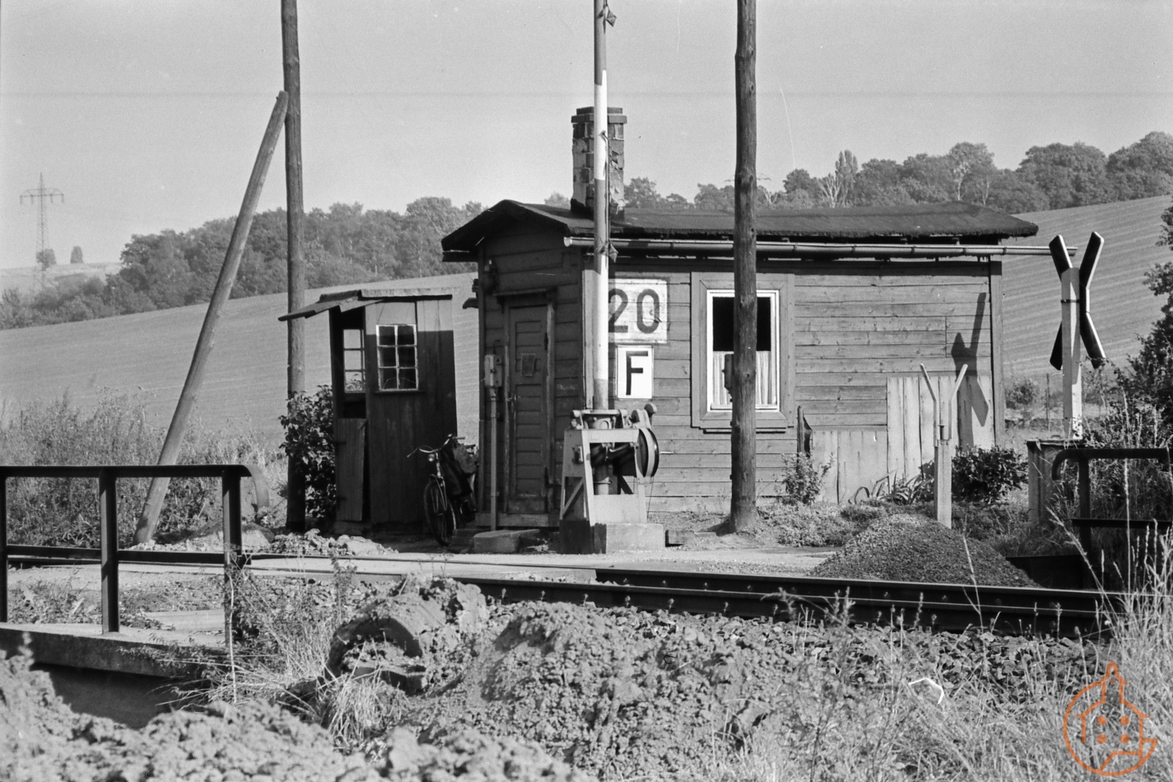 Einer der nicht mehr existierenden einstigen Bahnübergänge in Zschernitzsch. Dieser war am Ostrand vom Zschernitzsch an der Straße "Am Wehr". Heute kommt man an diese Stelle wenn man an der Feuerwehr vorbei fährt.