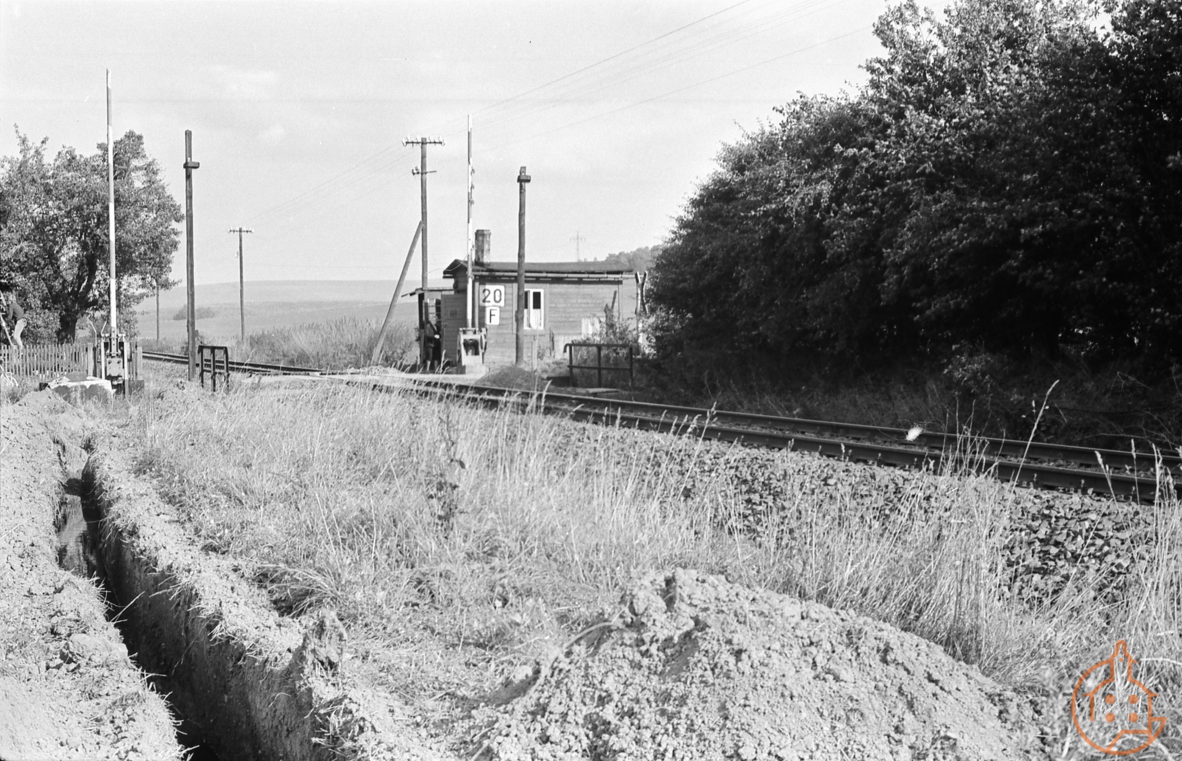 Einer der nicht mehr existierenden einstigen Bahnübergänge in Zschernitzsch. Dieser war am Ostrand vom Zschernitzsch an der Straße "Am Wehr". Heute kommt man an diese Stelle wenn man an der Feuerwehr vorbei fährt.
