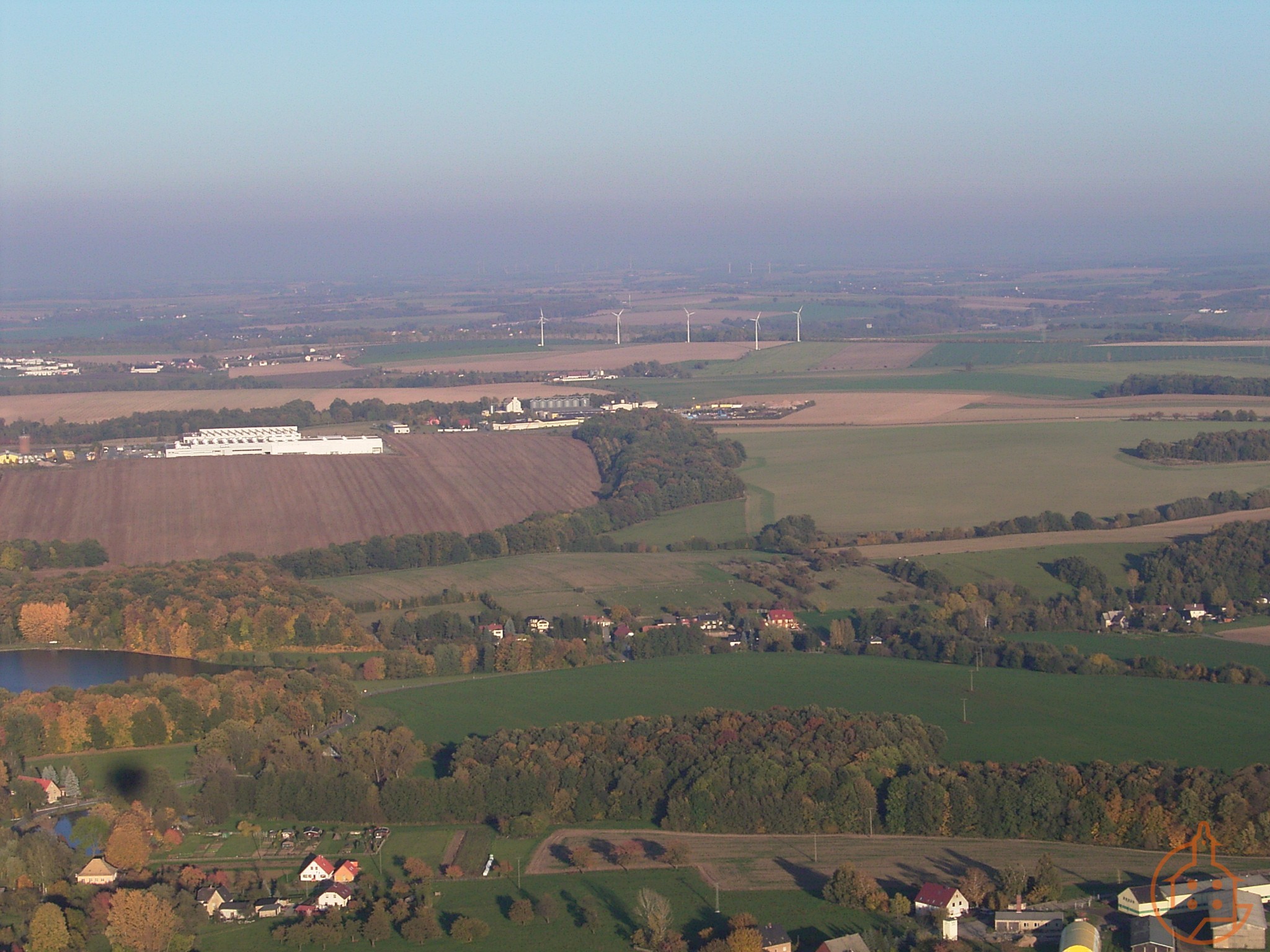 Blick auf  Brandrübel, Sommeritz und Gewerbegebiet. Luftaufnahme - Ballon