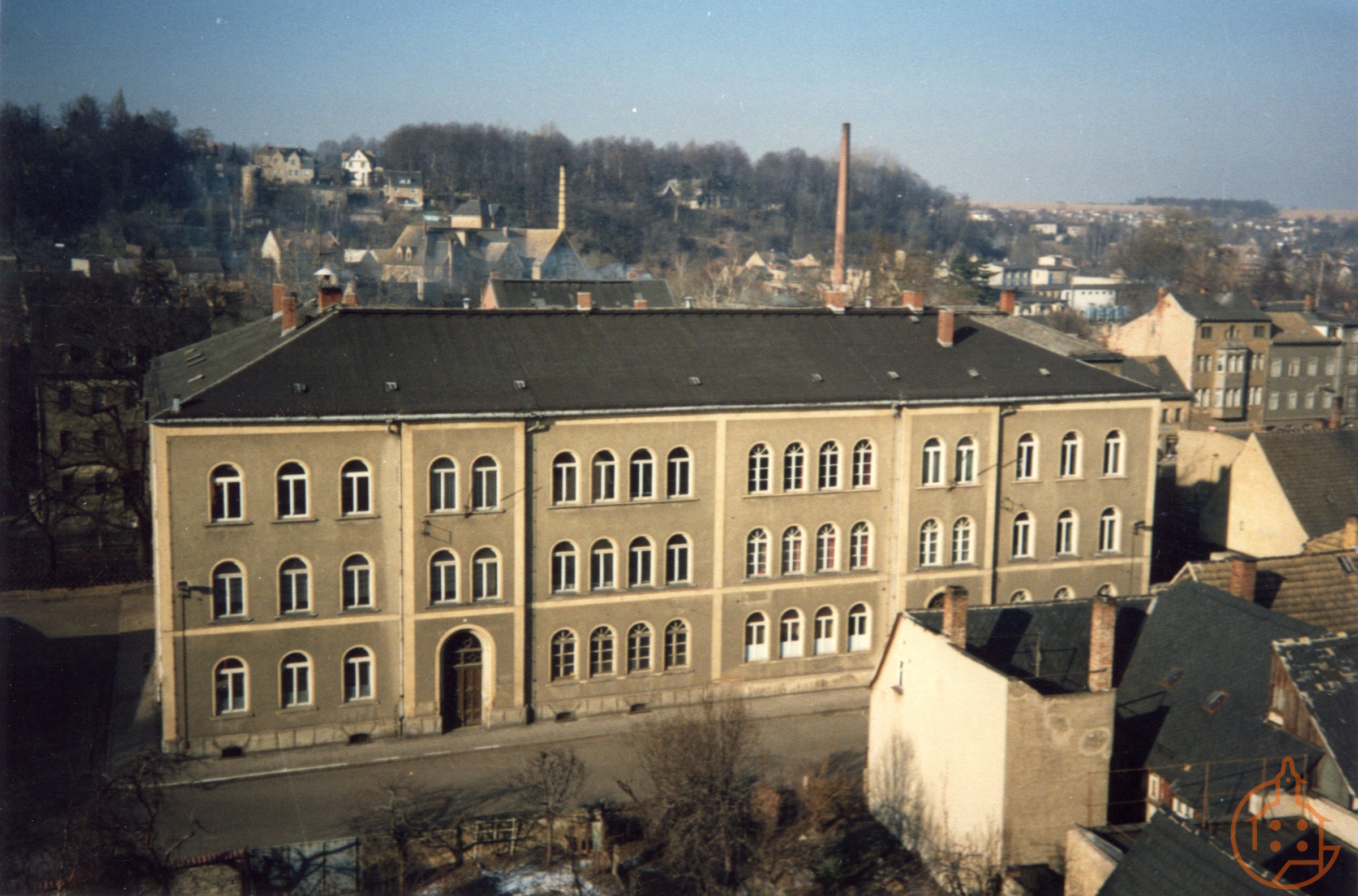 Blick von oben auf das Gymnasium in der Schloßstraße