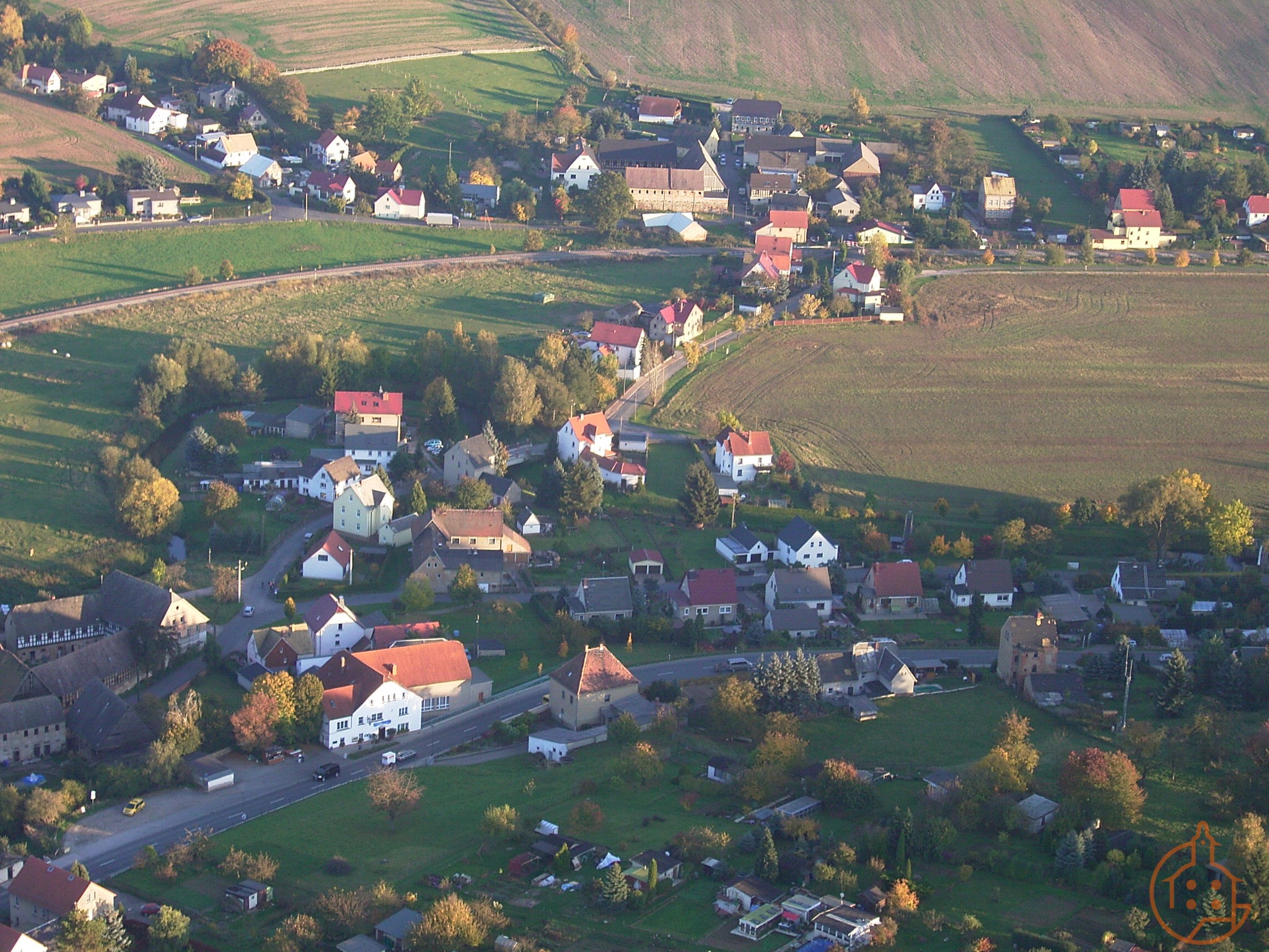 Blick auf Großstöbnitz  mit Gasthof - Luftaufnahme