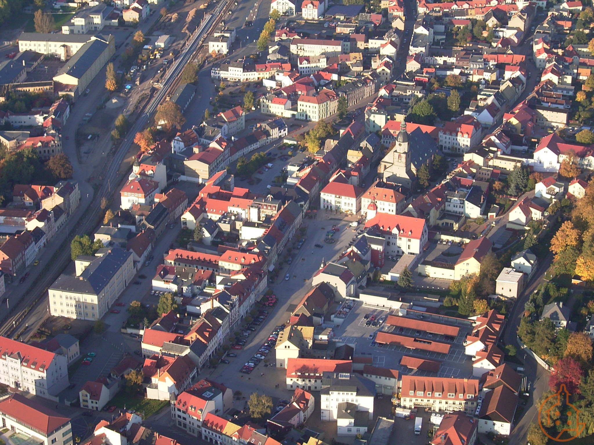 Blick auf Schmölln (Markt, Schloßstraße, Schulstraße)(Luftaufnahme)