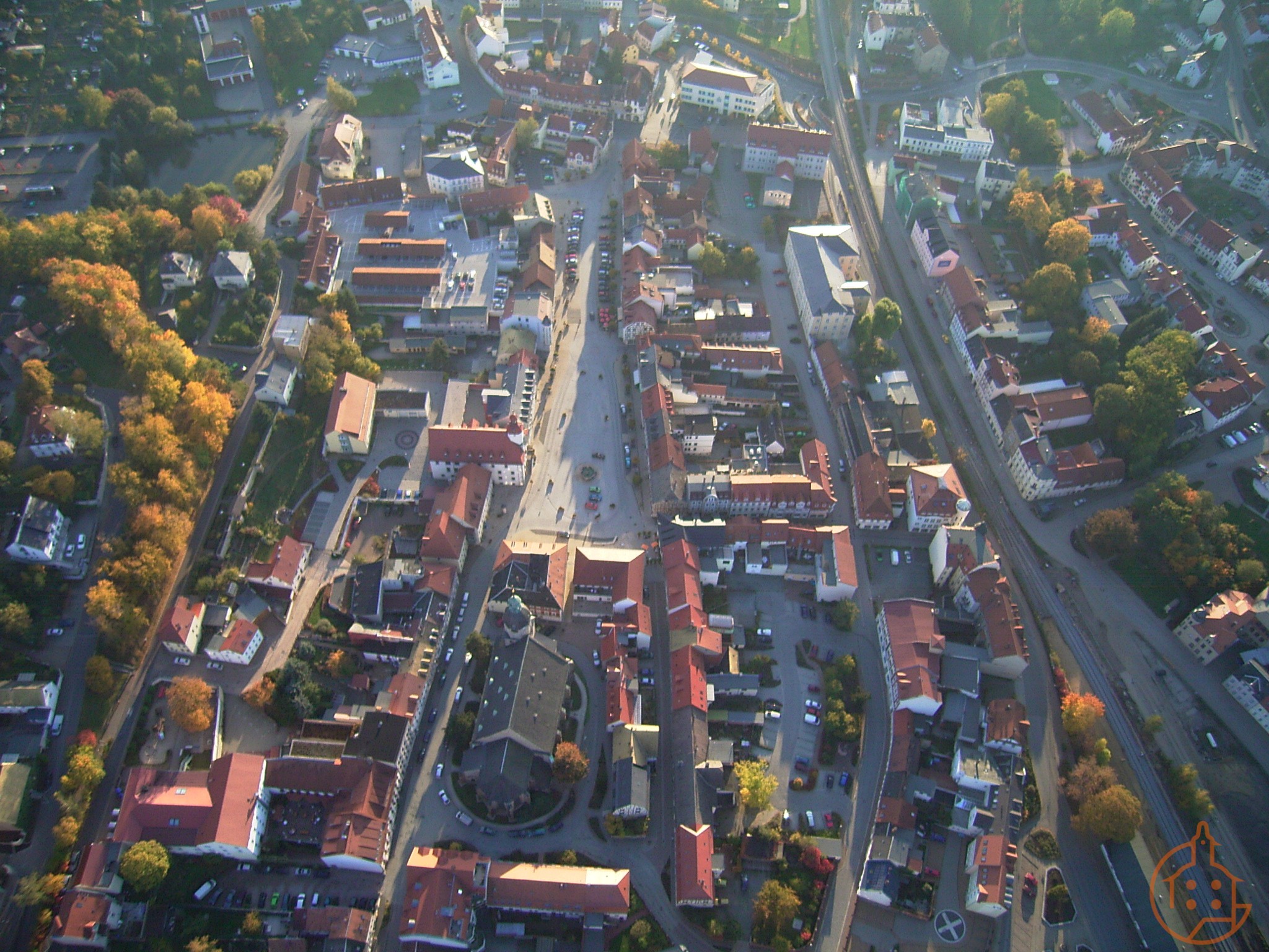 Blick auf Schmölln (Markt, Stadtkirche St. Nicolai). (Luftaufnahme)