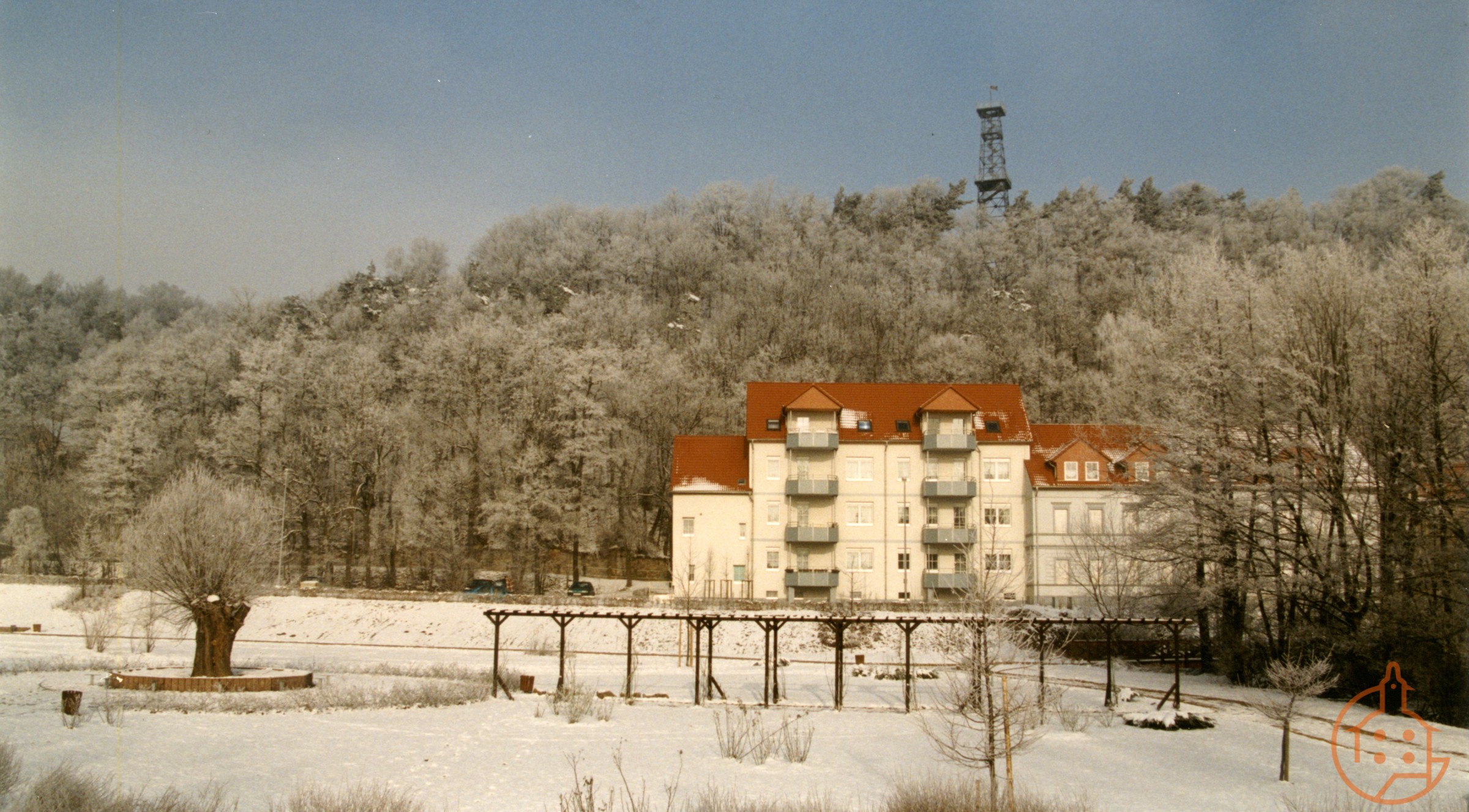 Blick aus dem Stadtpark in Richtung ehemalige Weihmühle und zum Aussichtsturm (Ernst-Agnes-Turm)