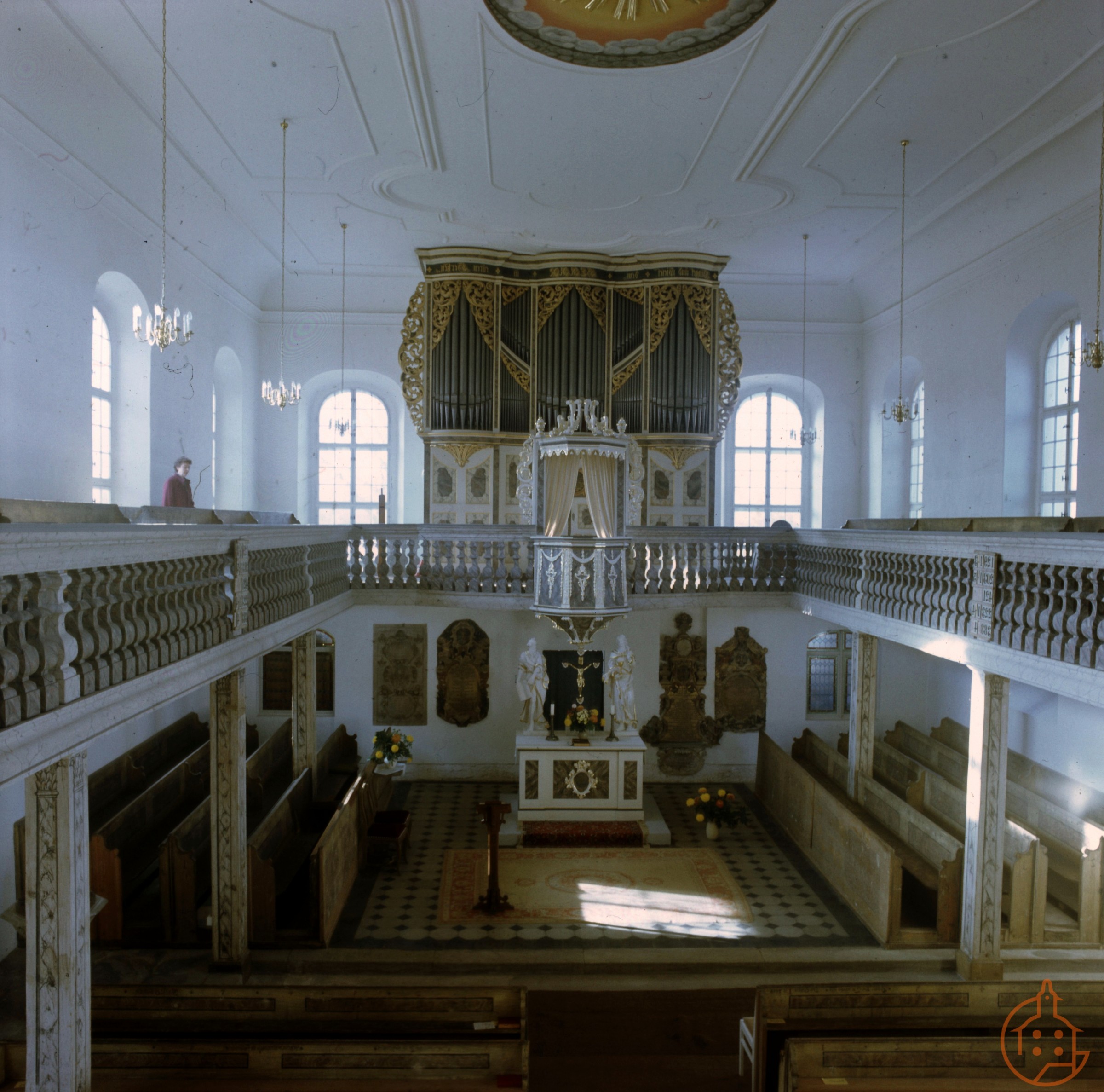 Blick in den Altarraum mit Silbermann-Orgel in der Kirche in Ponitz