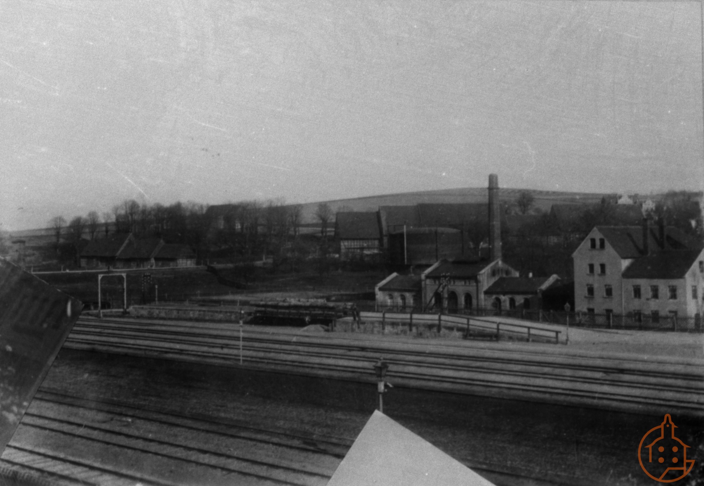 Blick über das Bahngelände zum Gaswerk