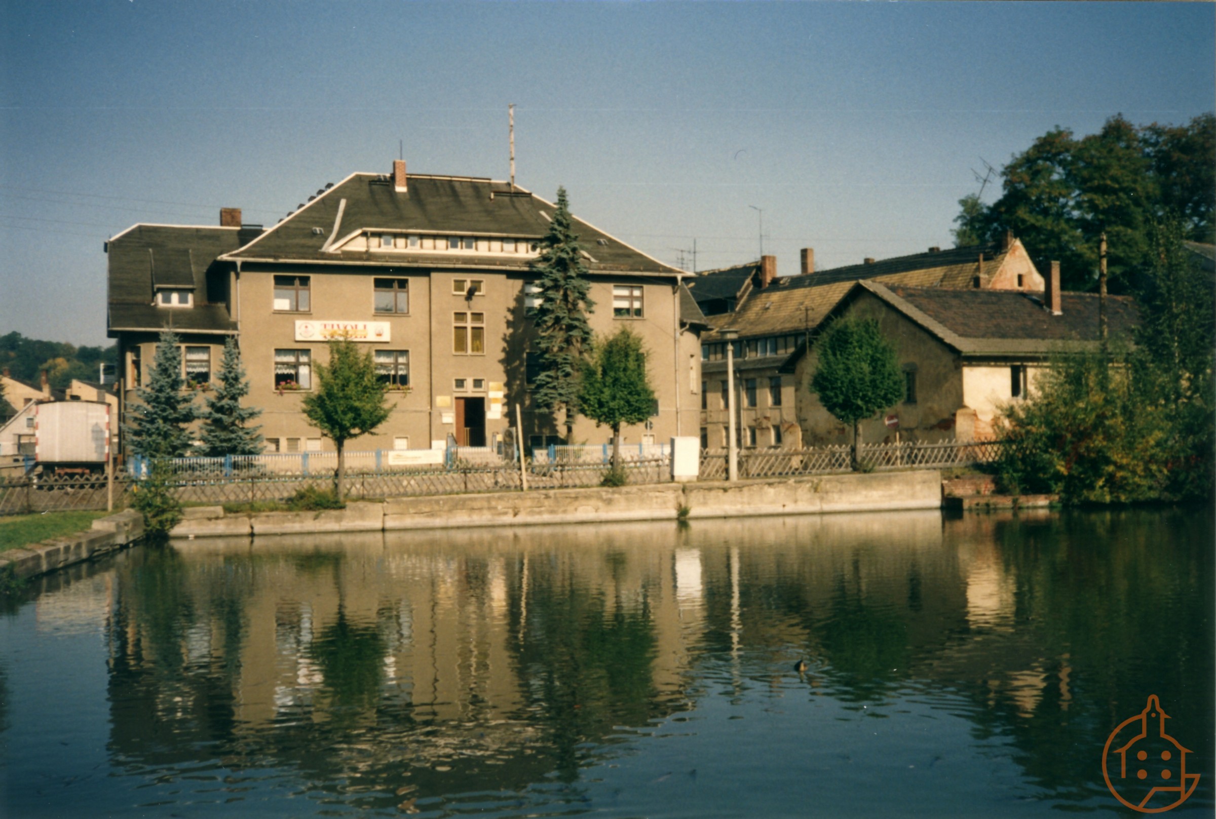 Blick über den Brauereiteich in Richtung Brauhof und zur ehemaligen SED Kreisleitung (Stadthaus)