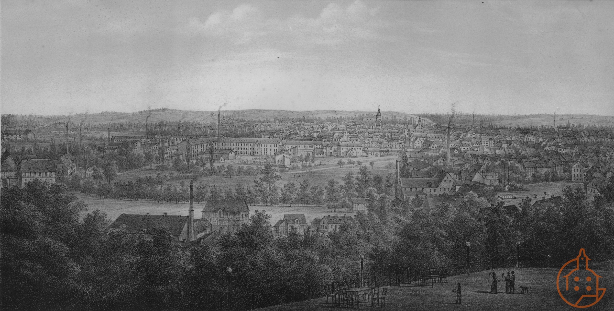 Lithografie Blick vom "Bellevue" auf die Stadt