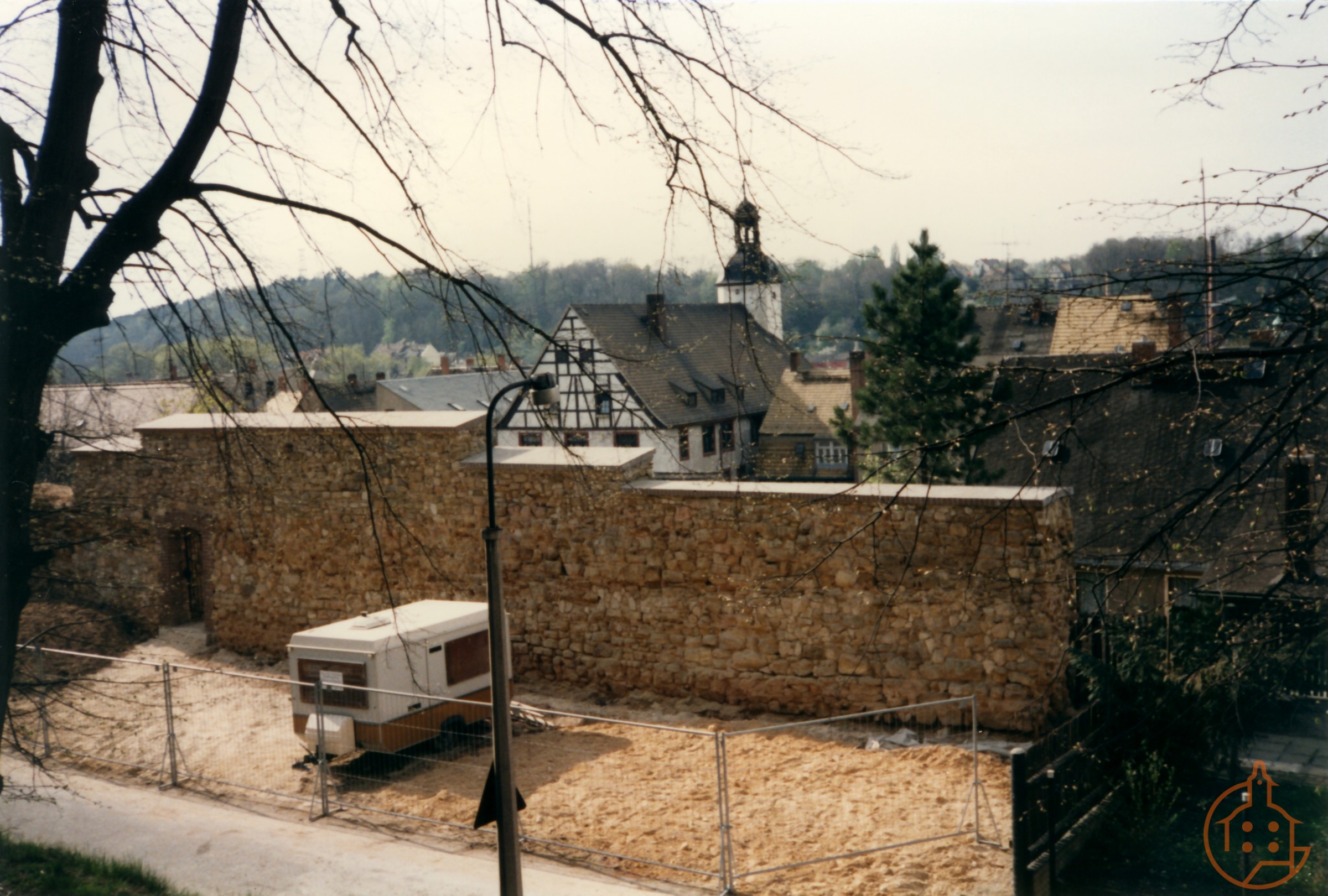 Blick vom Eichberg zum Rathaus und zur Stadtmauer