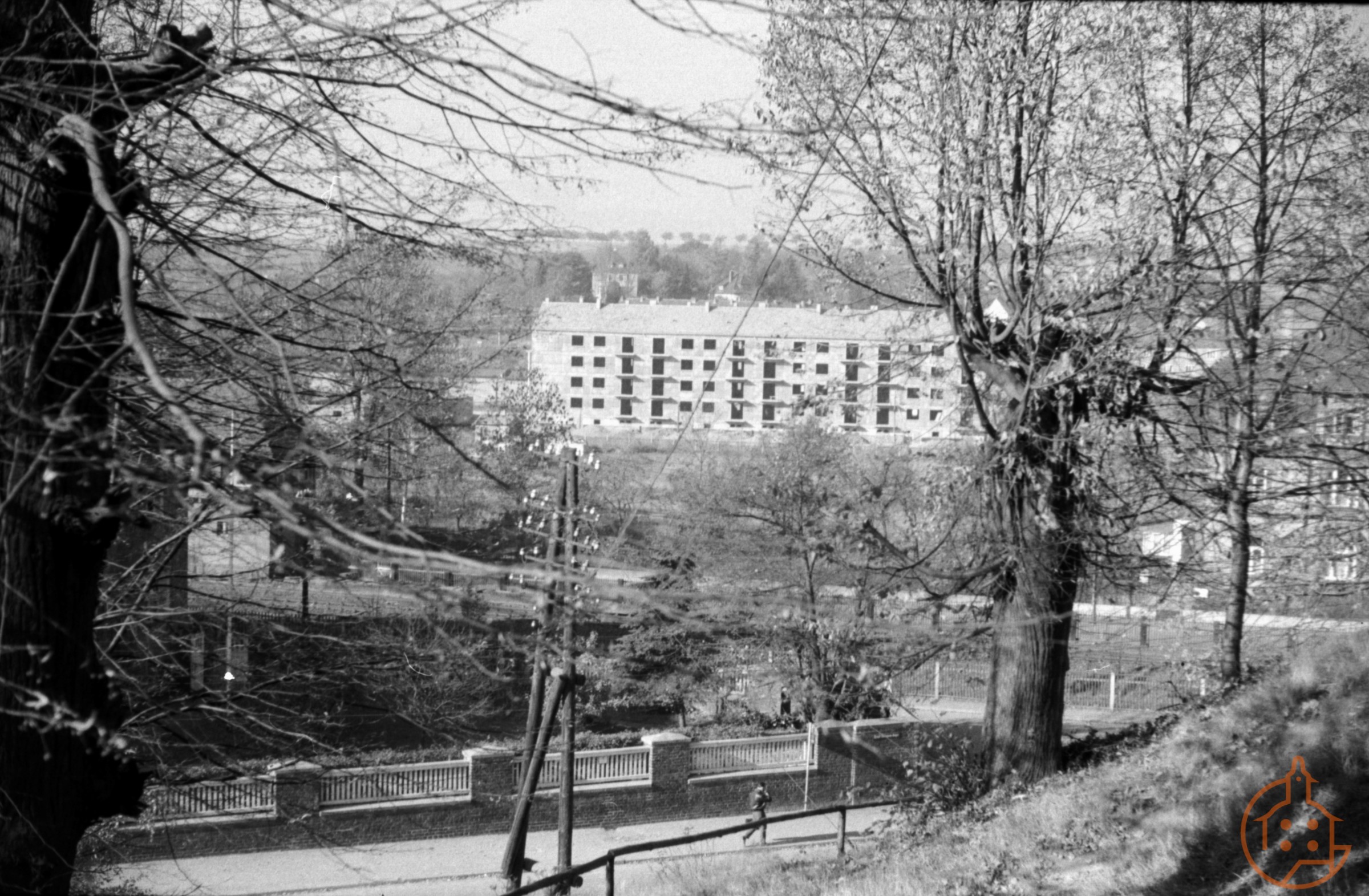 Blick vom Lindenberg zum Neubaublock in der Helmholtzstraße