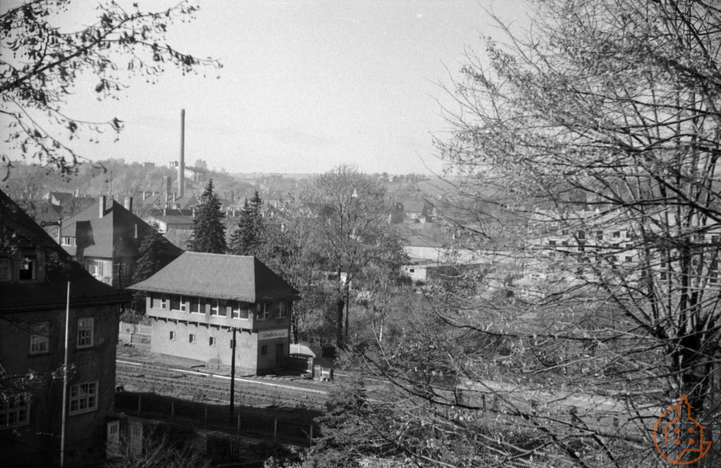 Blick vom Lindenberg zur Post und zum Stellwerk in der Altenburger Straße