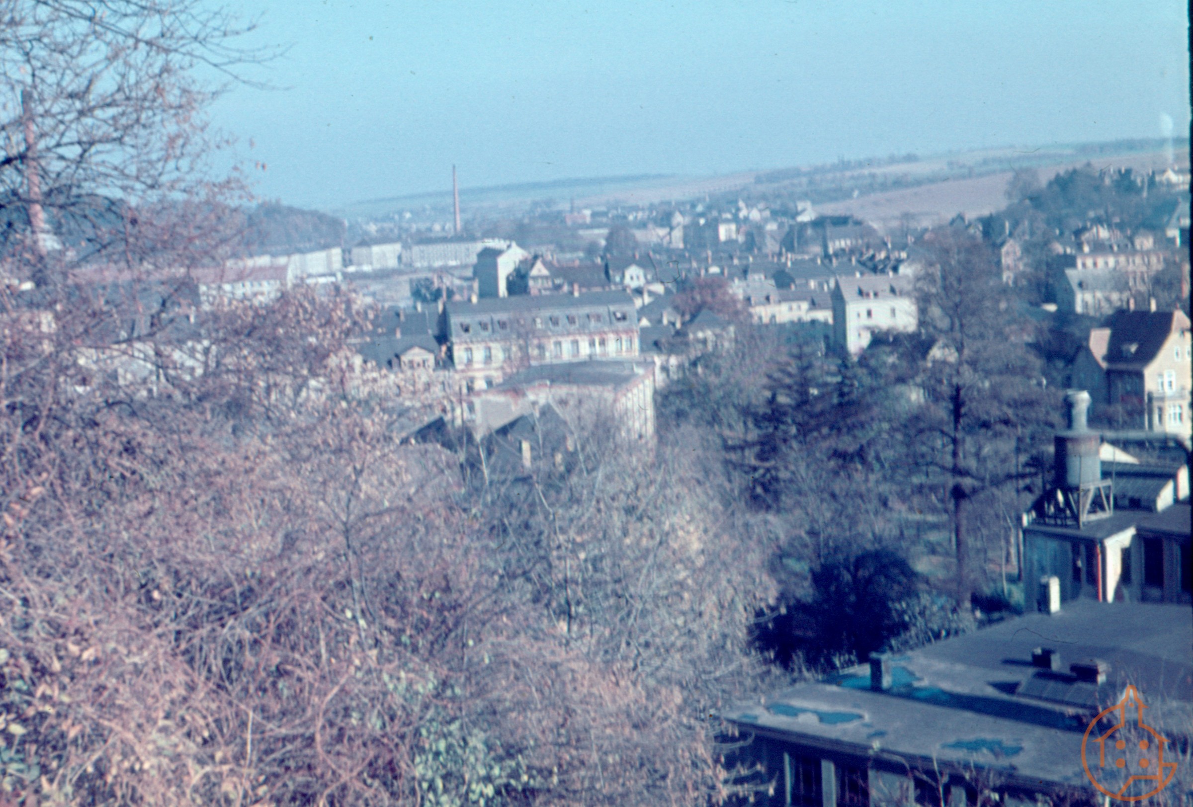 Blick vom Pfefferberg auf die östliche Stadt. In der Mitte die Hausmühle.
