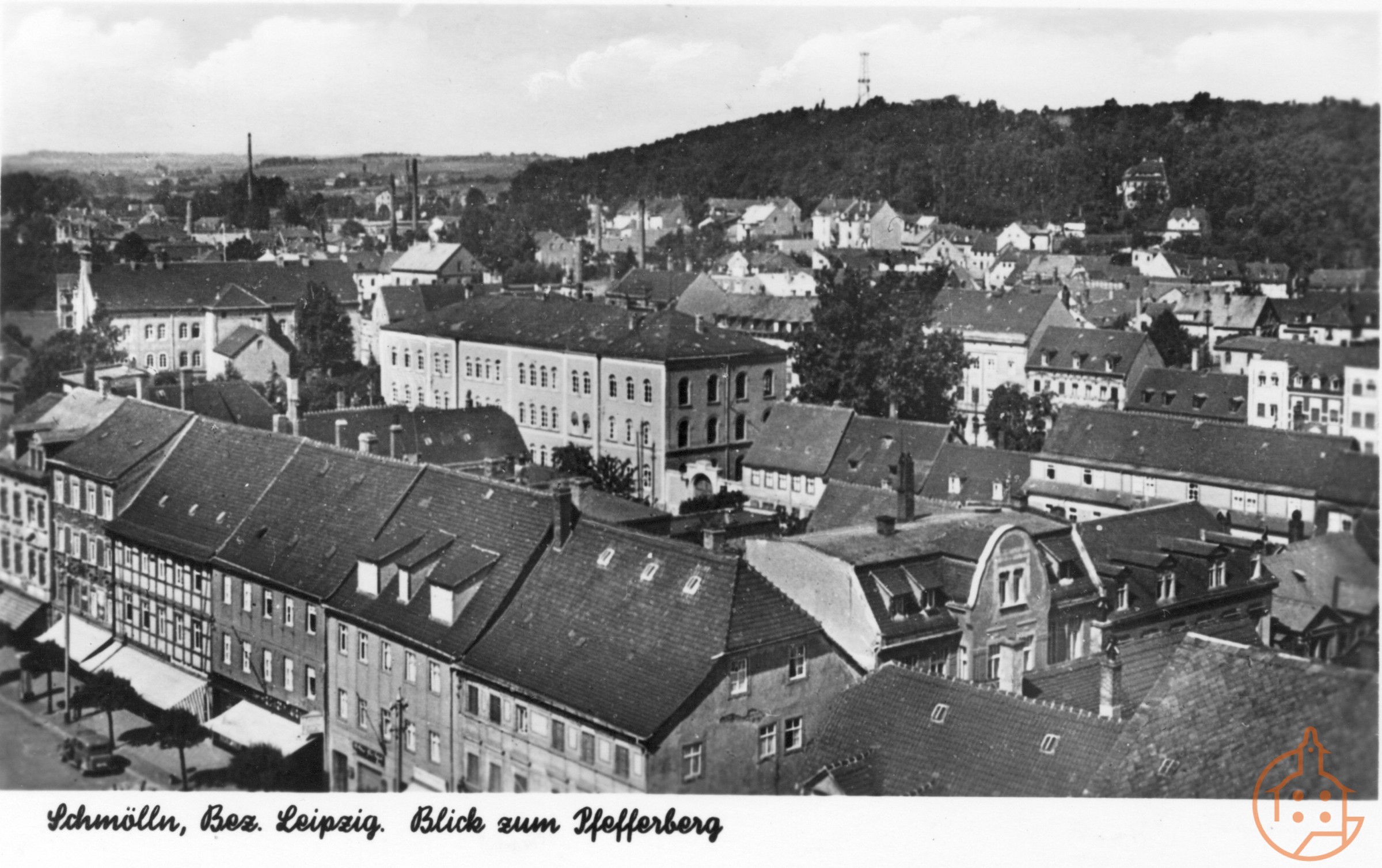 Blick vom Kirchturm in Richtung untere Schule und Pfefferberg mit Aussichtsturm