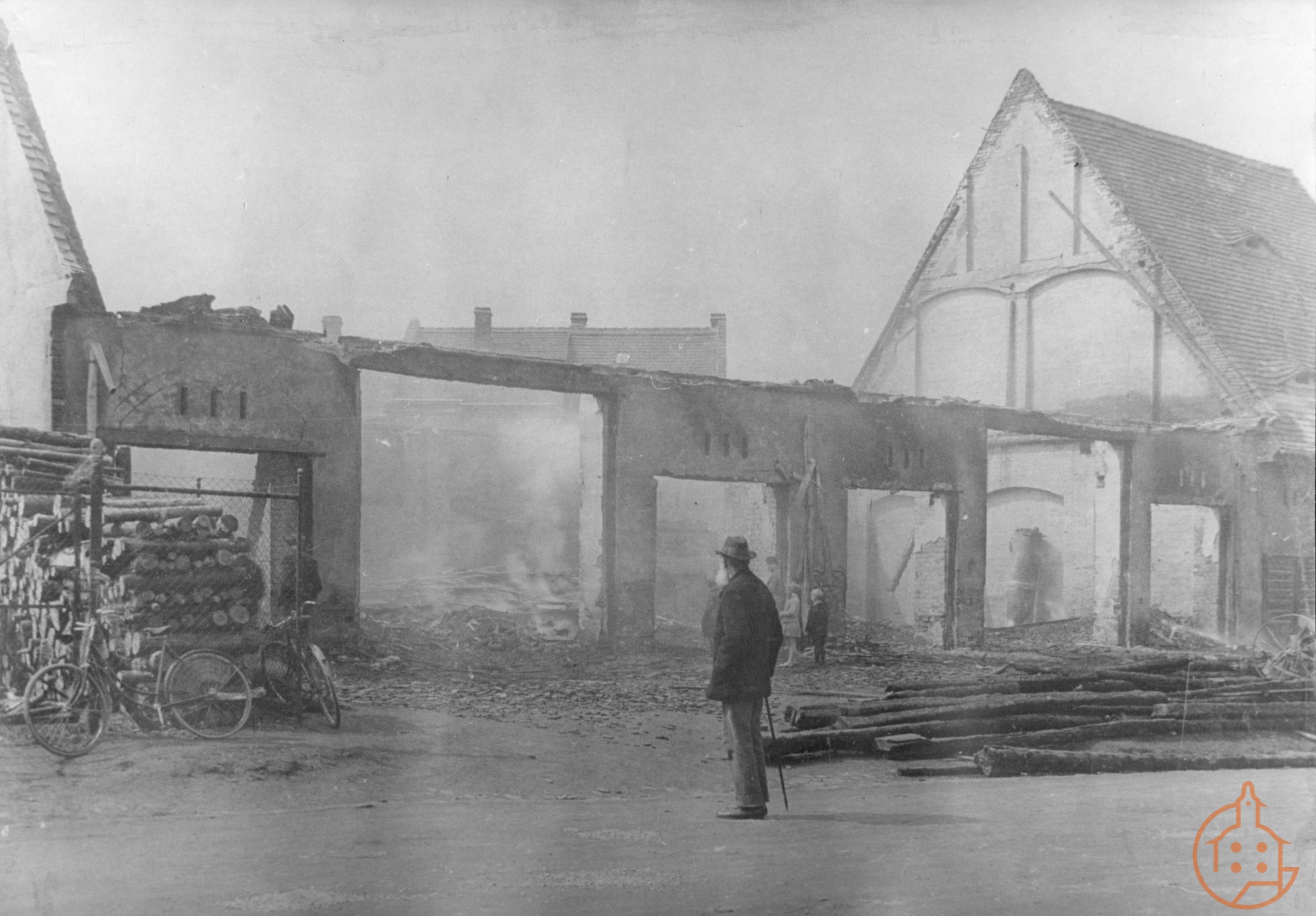 Zerstörte Scheune nach Brand an der Fabrik Mehlhorn