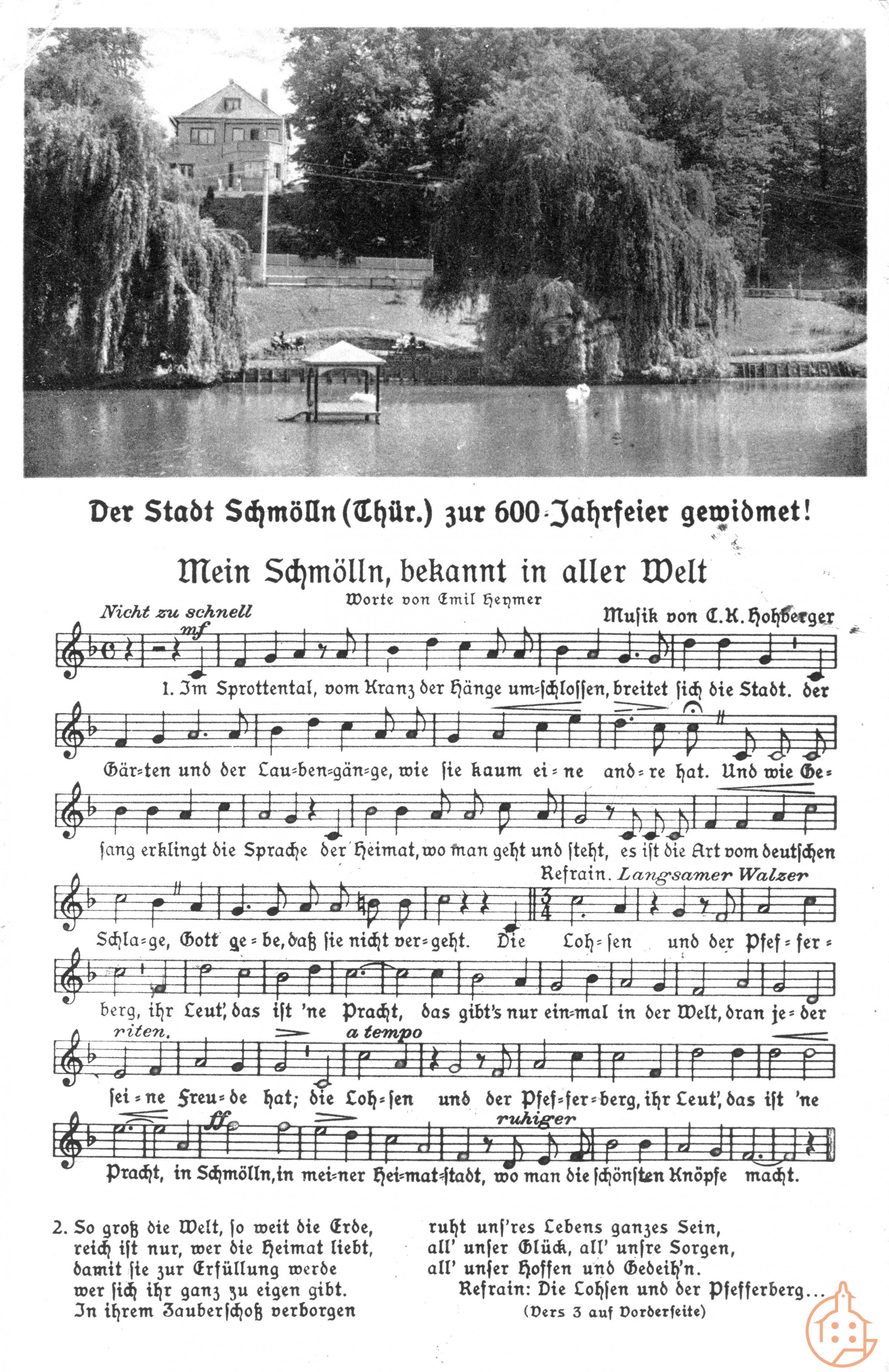 Brauereiteich mit Lied über Schmölln anläßlich der 600-Jahr-Feier