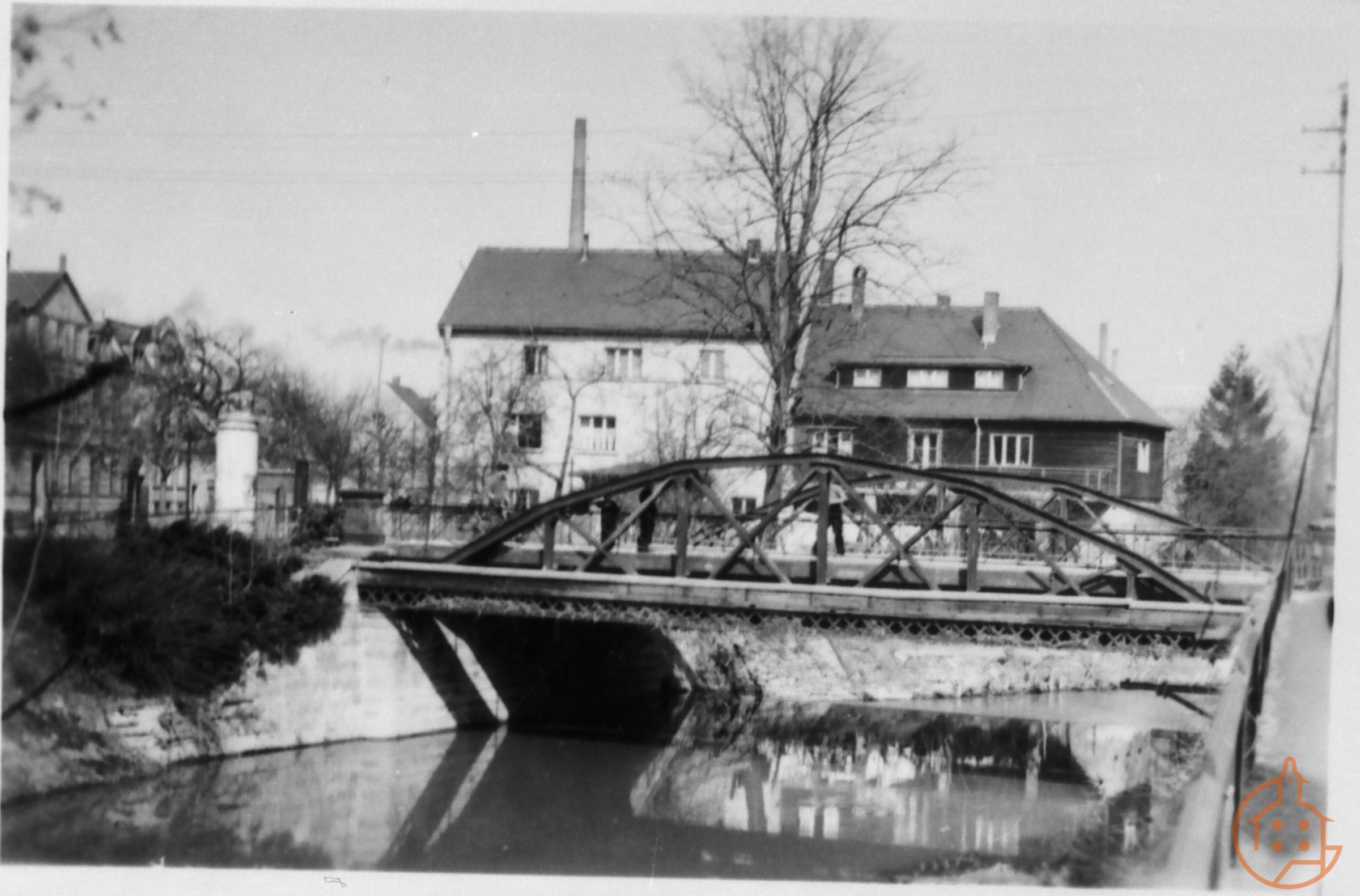 Brücke vom Amtsplatz zur Ronneburger Straße über die Sprotte. Von der Uferstraße aus zum Brückenplatz gesehen.