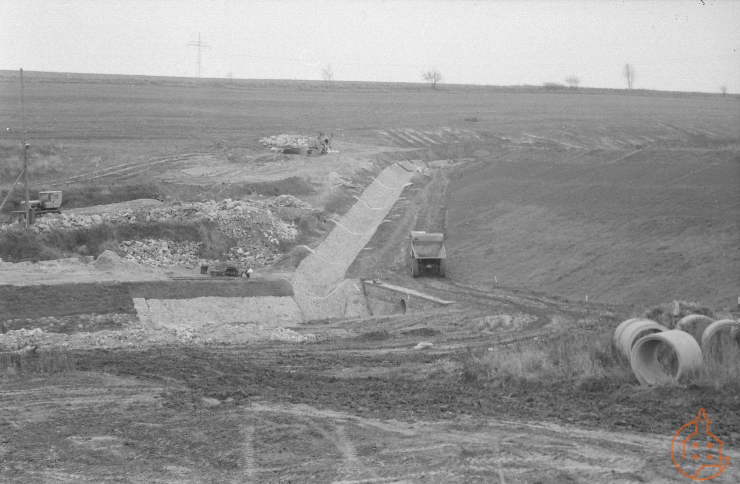 Baufahrzeuge in Großstöbnitz, Dammbau "Lobige"