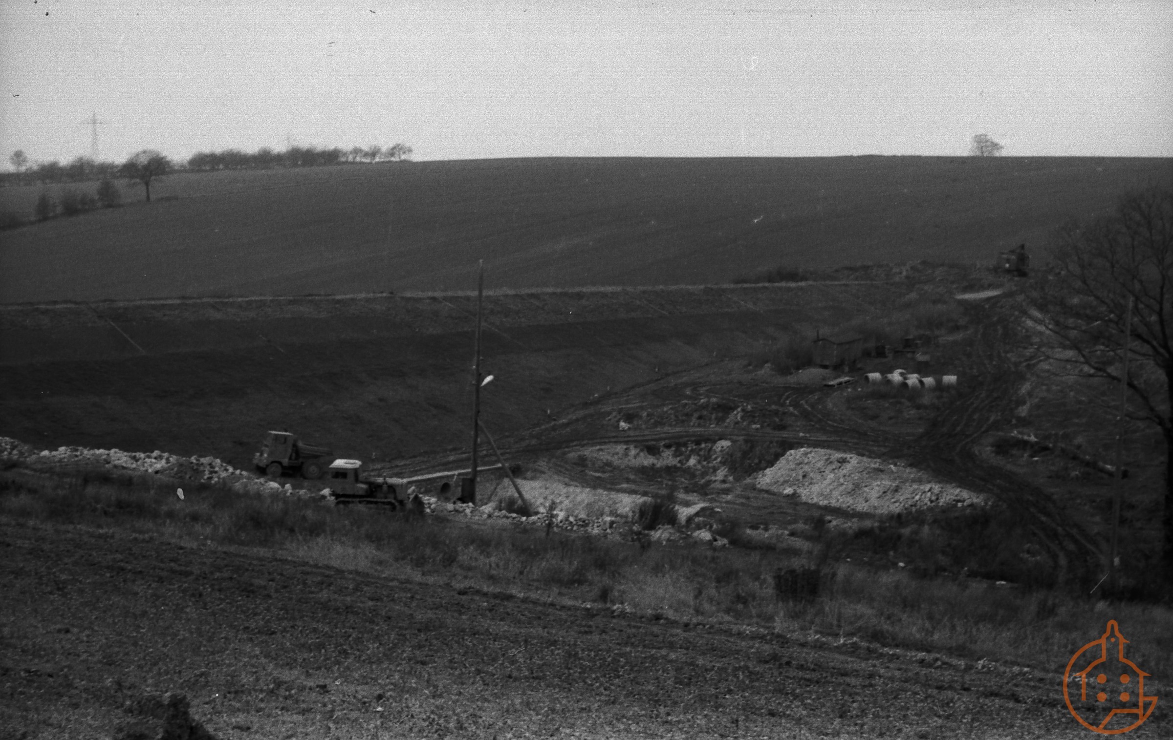 Baufahrzeuge in Großstöbnitz, Dammbau "Lobige"