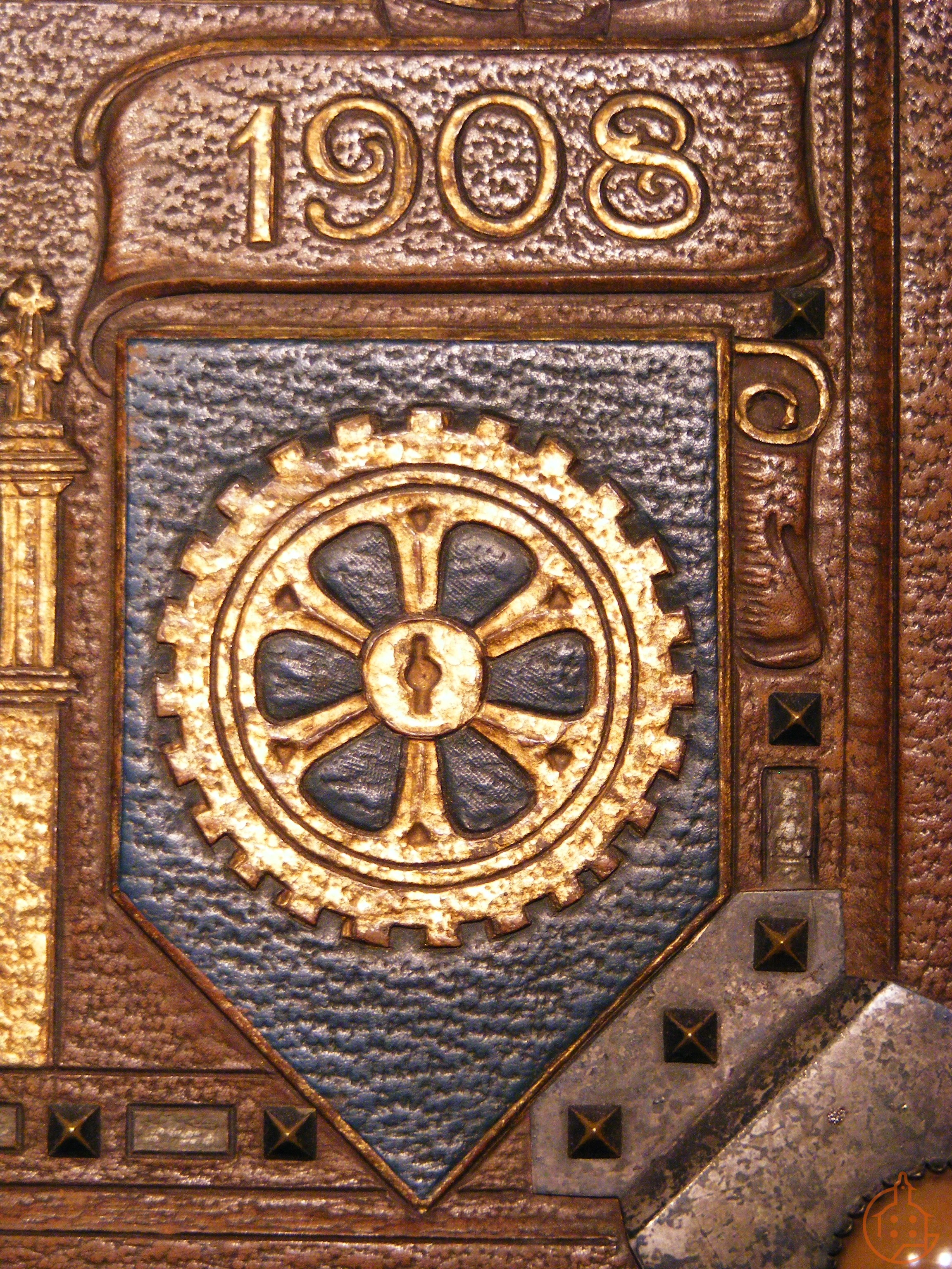 Wappen rechts auf der ledernen Mappe für den Ehrenbürgerbrief von Kommerzienrat Hermann Donath
