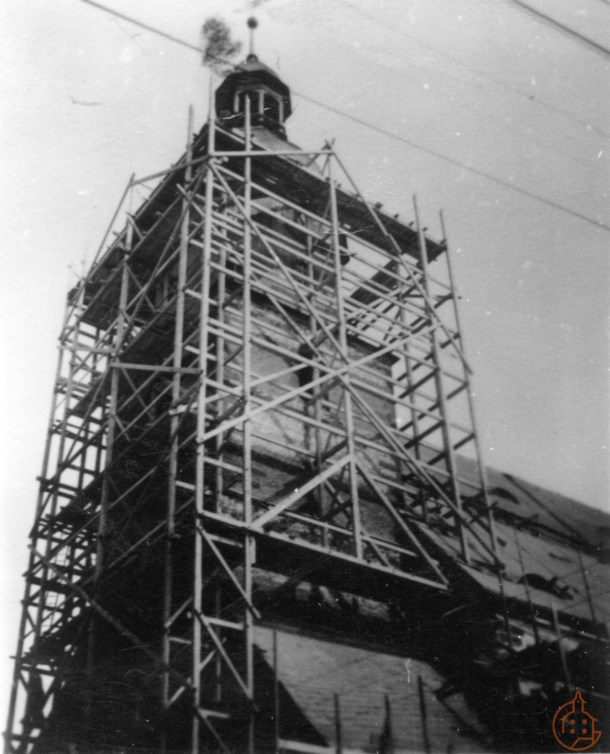 Eingerüstete Stadtkirche St. Nicolai, zwecks Sanierungsarbeiten
