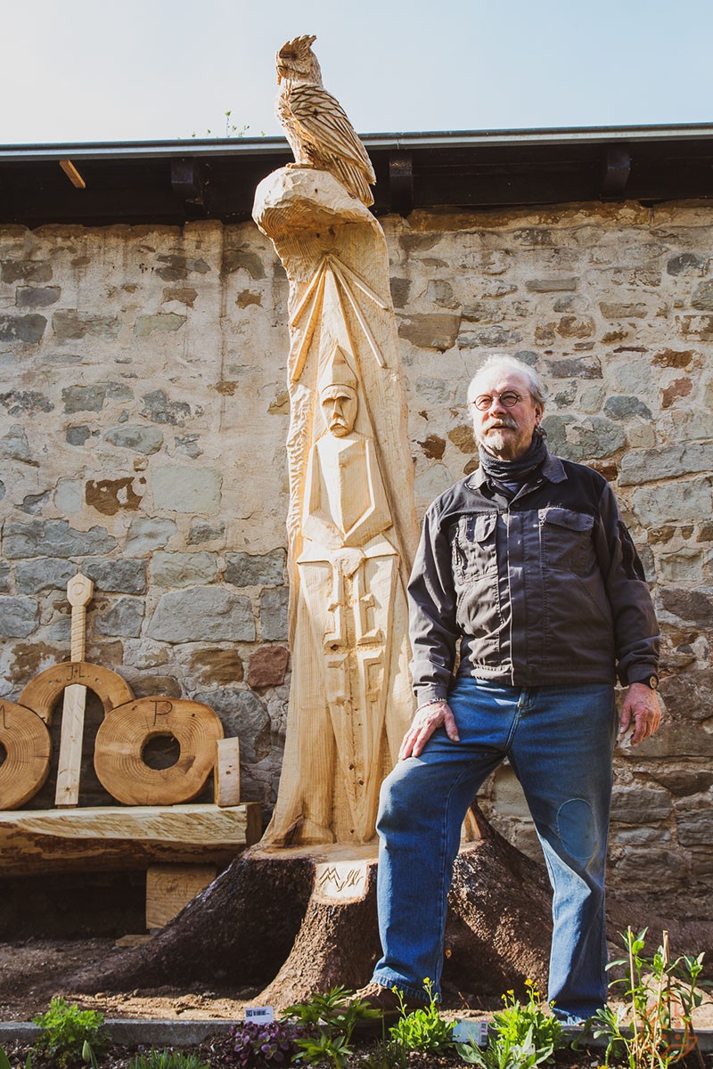 Schmölln ist um einen weiteren Blickfang reicher: Die originalgetreue Nachbildung des auf dem Pfefferberg befindlichen Denkmals zur Erinnerung an die im ersten Weltkrieg gefallenen Soldaten. Das aus einer alten Blaufichte geschnitzte Kunstwerk steht nicht nur an der Schmöllner Stadtmauer, sondern auch im heimischen Garten von Peter Böhme.