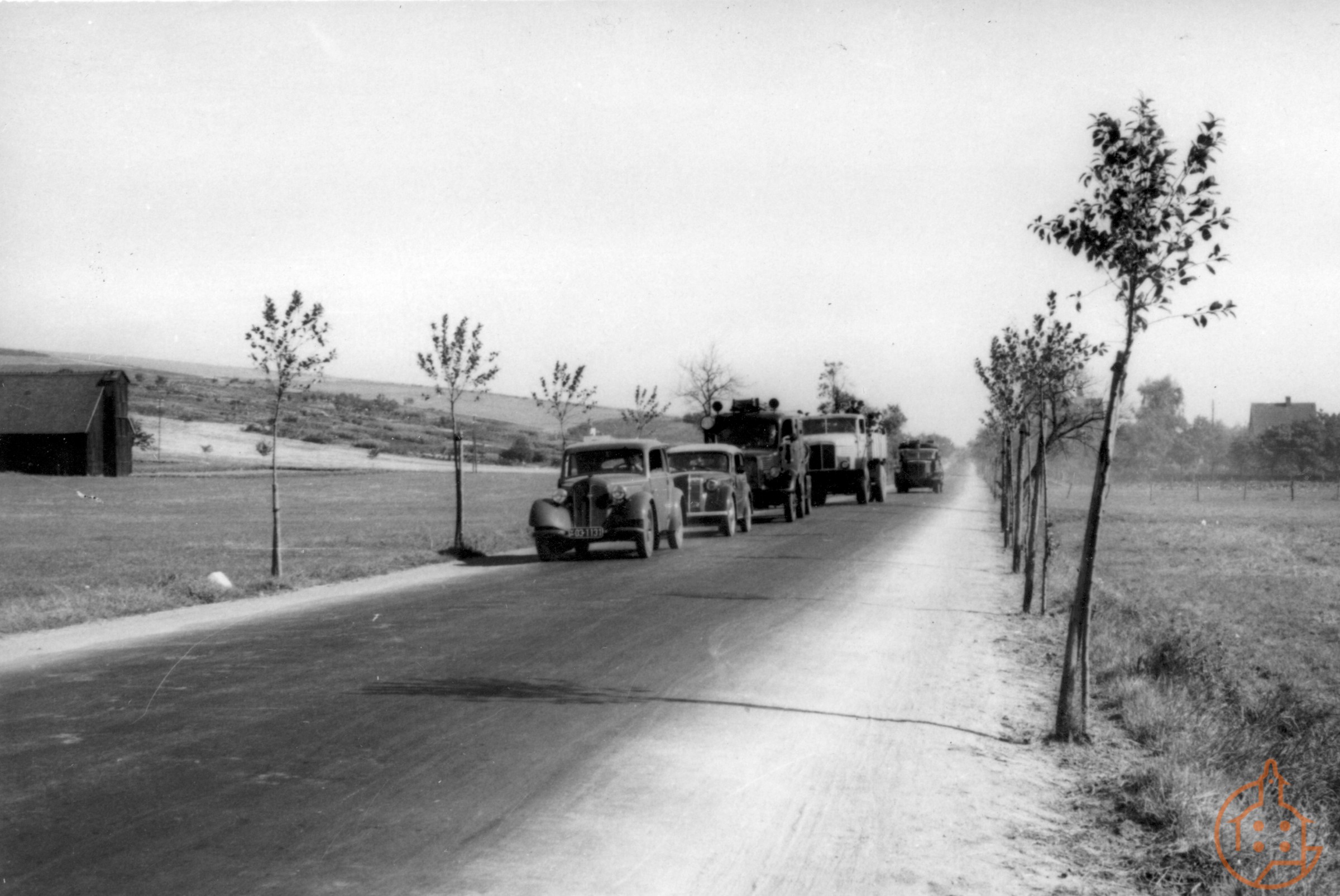 Fahrzeuge auf dem Weg nach Zschernitzsch zur Hauptübung der Wehr Schmölln