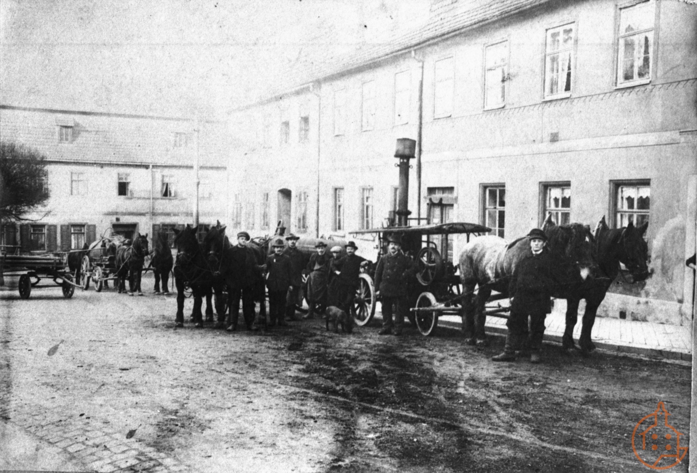 Fäkalienabfuhr mit Dampfmaschine auf dem Kirchplatz