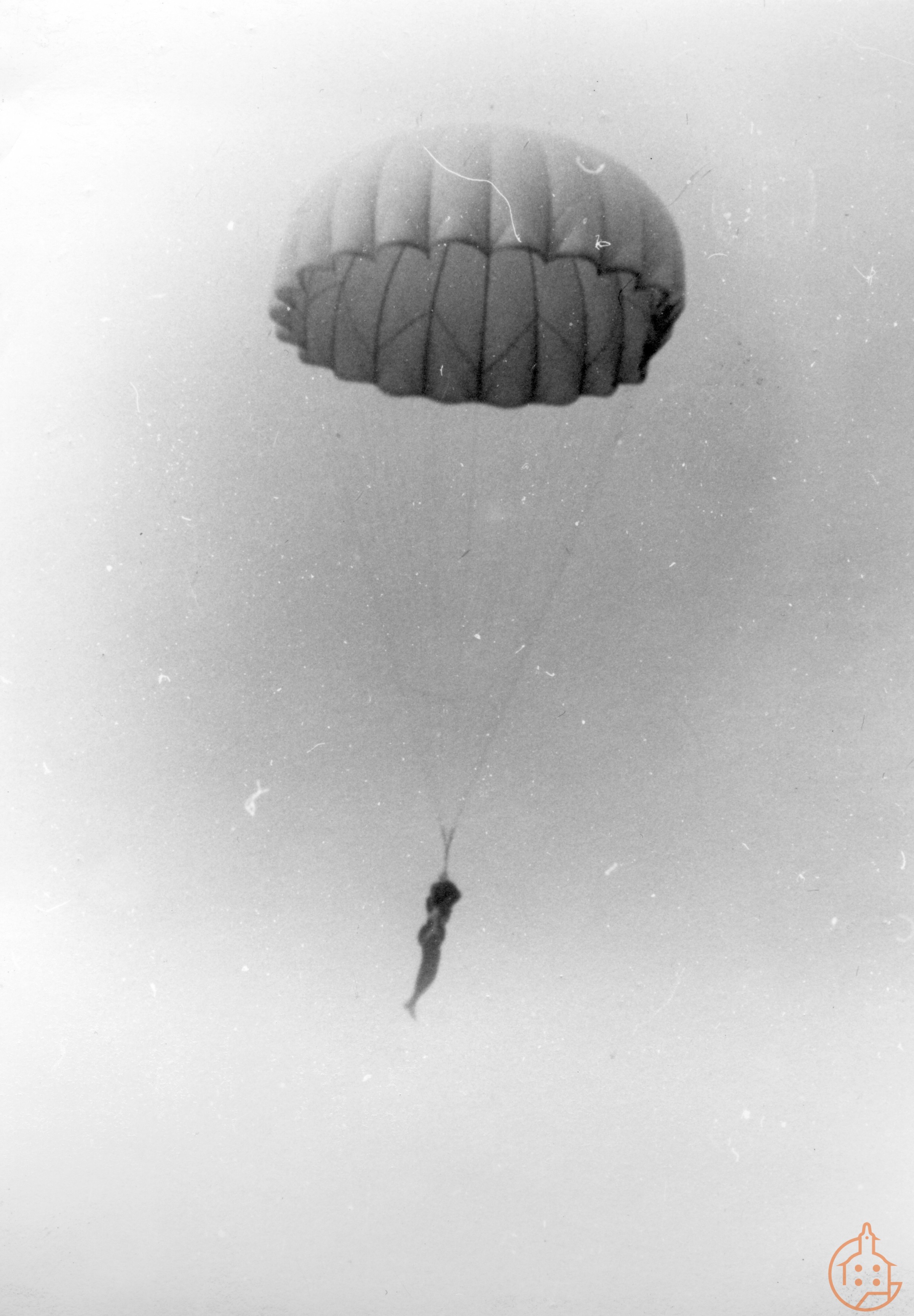 Fallschirmsprung von Frau Dr. Lola Schröter-Voreswa zum Flugsporttag in Schmölln