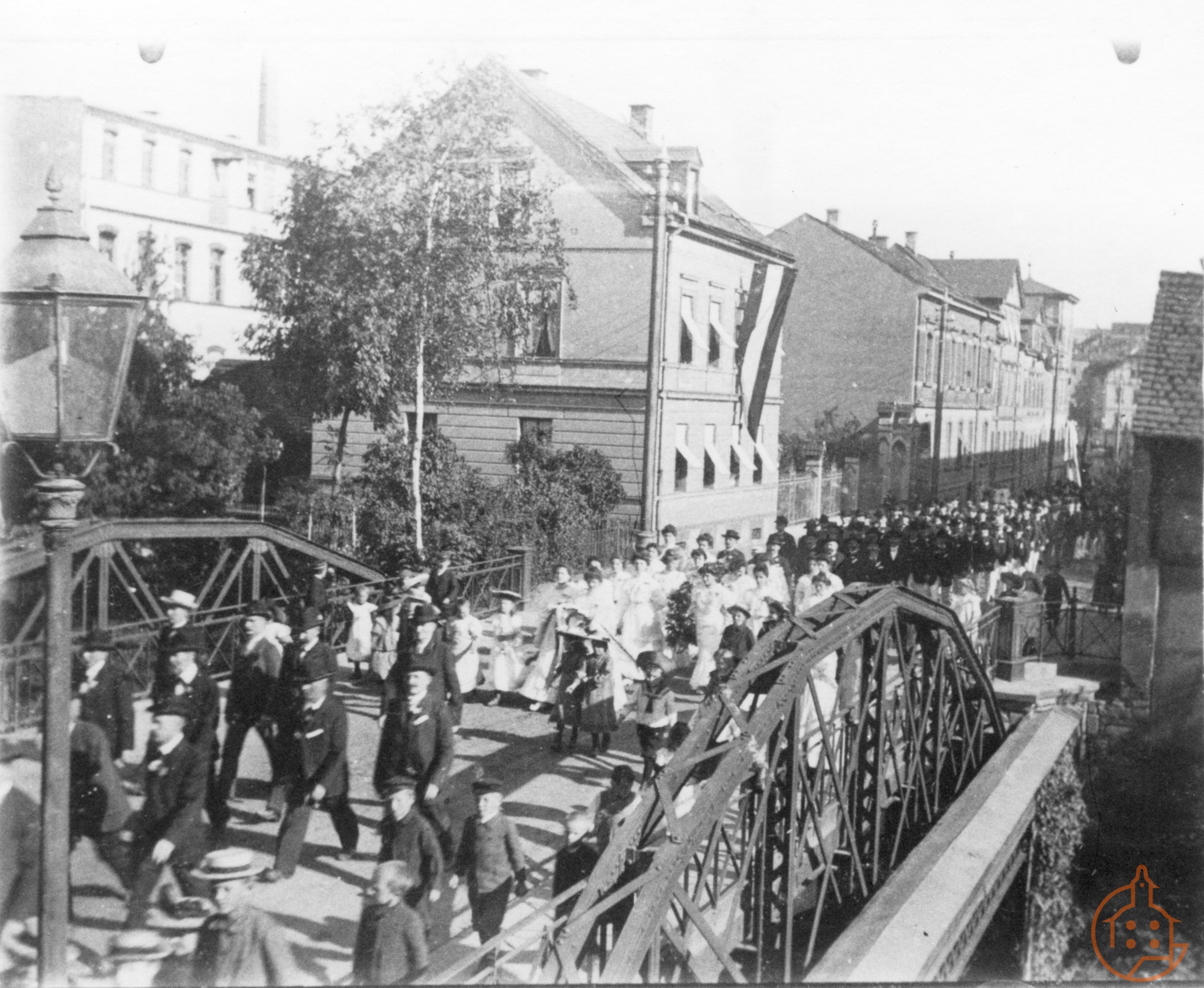 Festumzug in der Hermannstraße (August-Bebel-Straße).