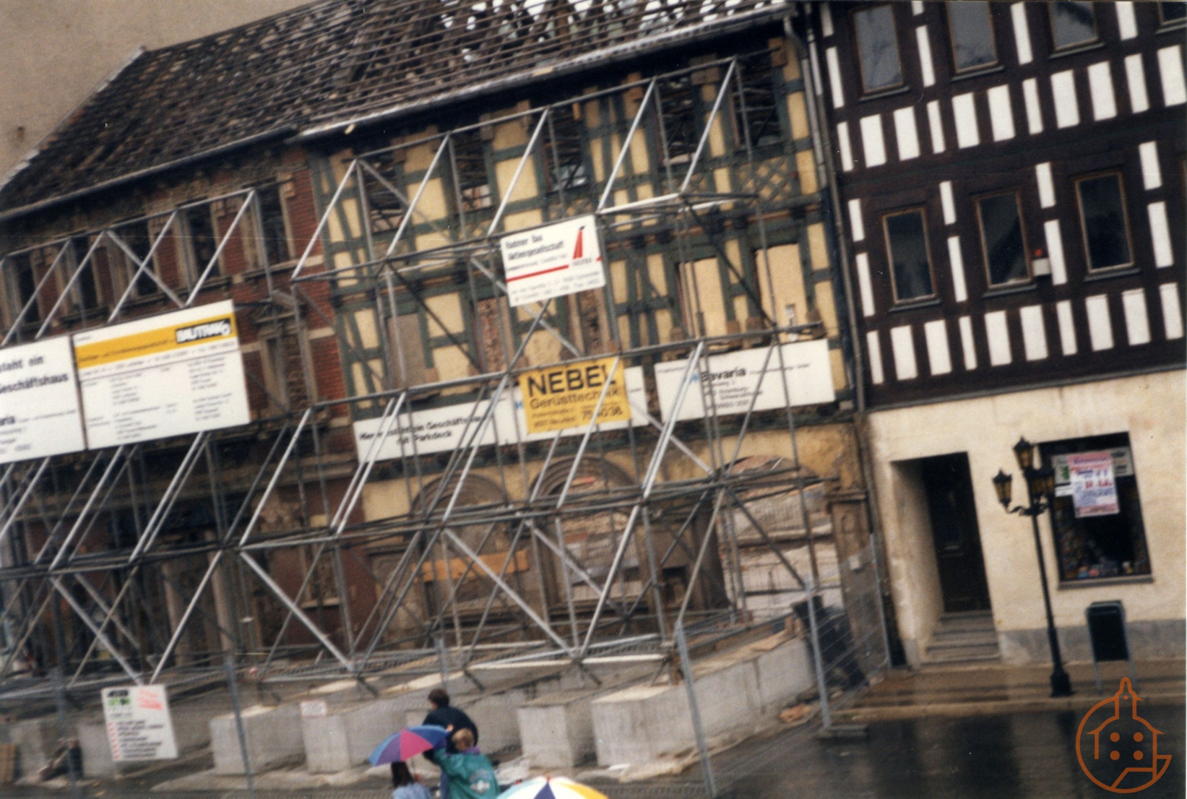 Wegen Umbauarbeiten zum Einkaufszentrum eingerüsteter ehemaliger Gasthof "Schwarzer Bär"