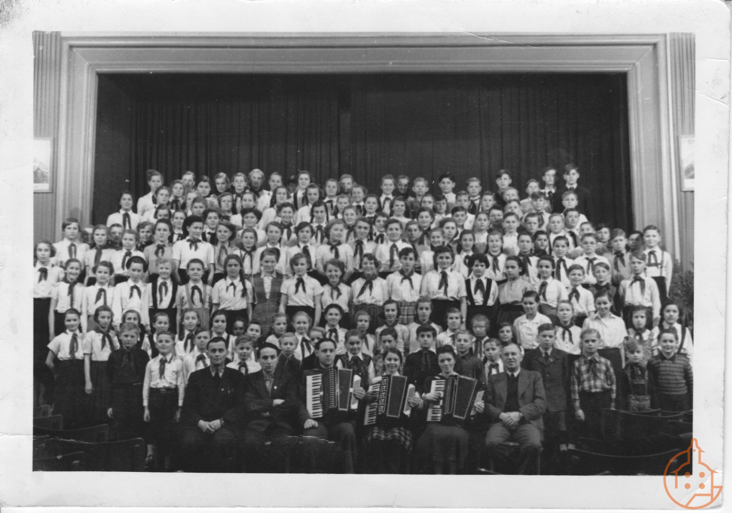 Lehrerkollegium der Volksschule Gruppenfoto des Lehrerkollegiums der Schmöllner Volksschule mit Rektor Seyfahrt Dia, Nr. IV, 1
