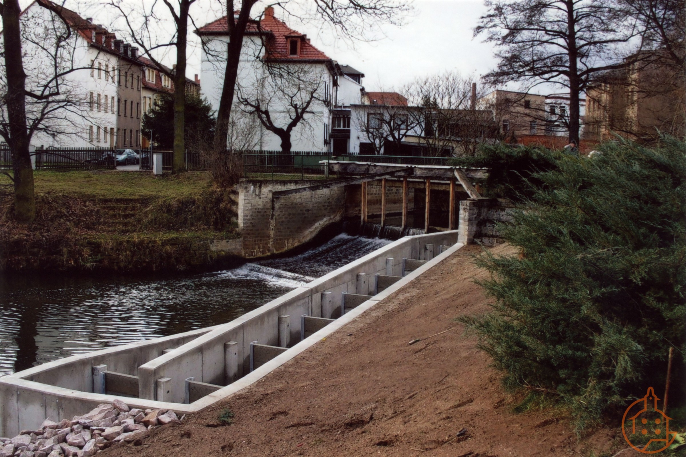 Hausmühlenwehr mit neuer Fischtreppe in der Wehrstraße