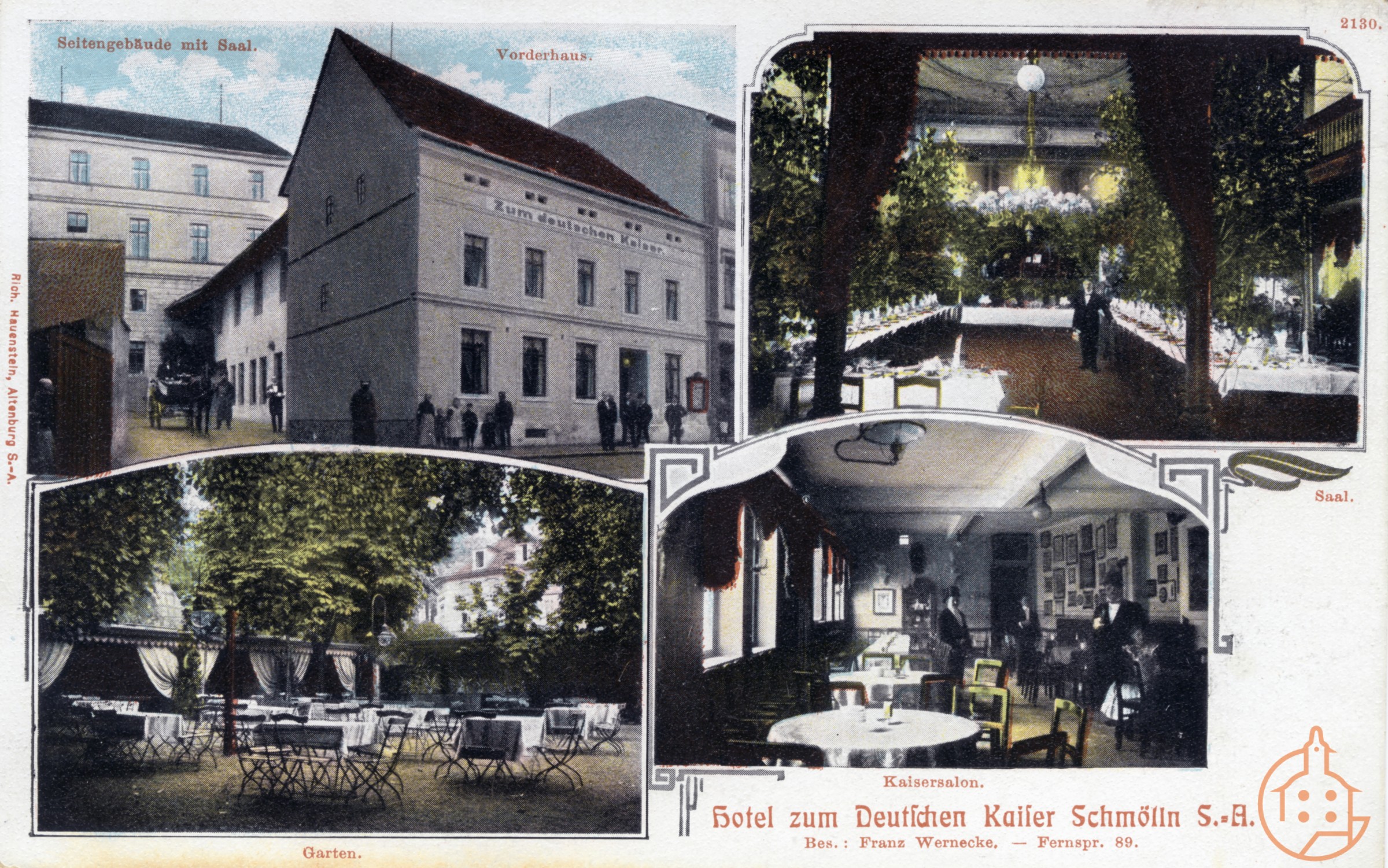 "Deutscher Kaiser", Seitengebäude mit Saal, Vorderhaus, Garten und Kaisersalon