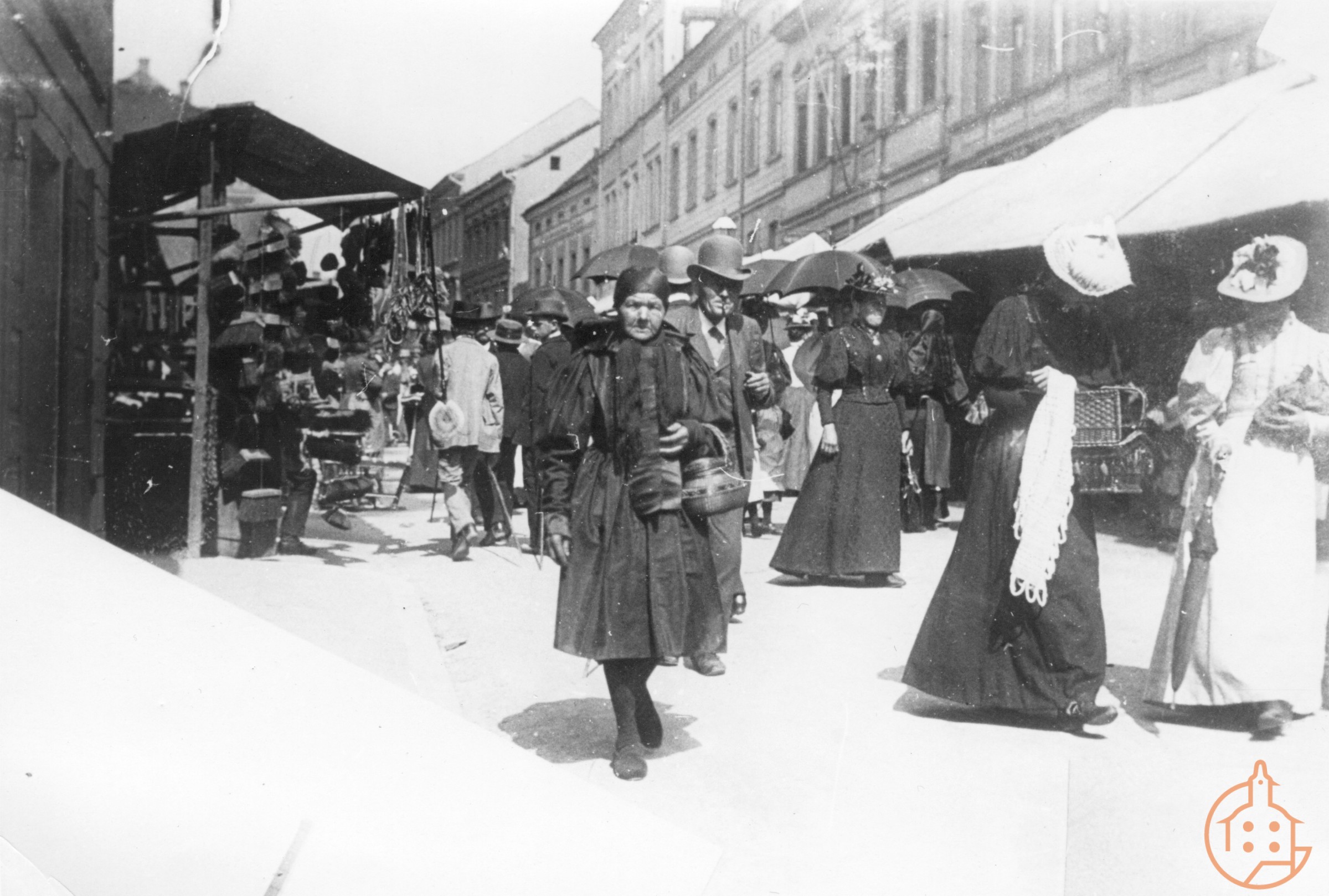 Jahrmarkt in der Altenburger Straße (Gößnitzer Straße) mit Ständen und Marche