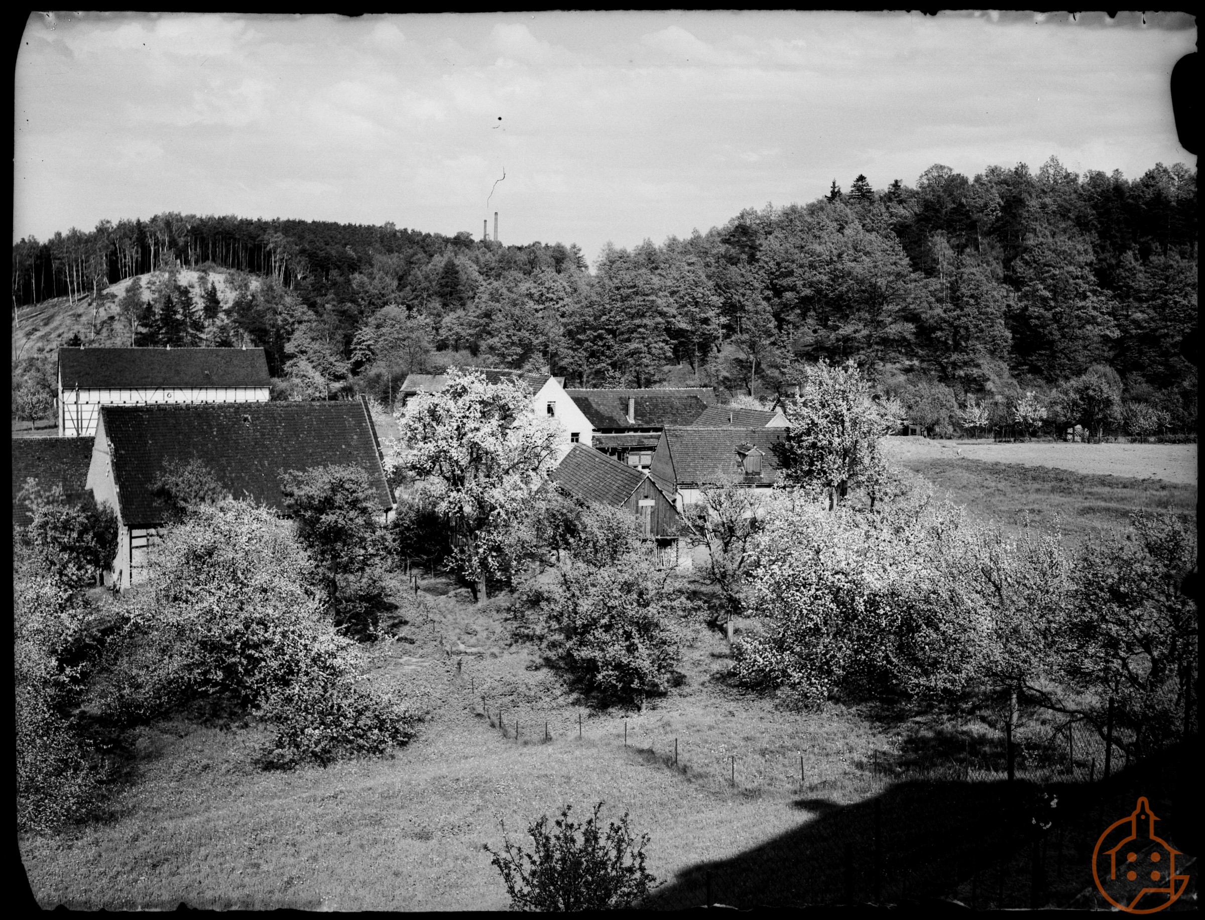 Blick von der Ziegelstraße auf die Lohsenstraße (Belßner Höhe, Scheunen)